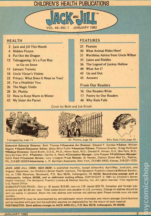 January 1982. All stories written by a collection of writers from the Jack and Jill Magazine company. Art by a number of various artists. 6.5" x 9", 50 pages, full color. Cover price $0.75.