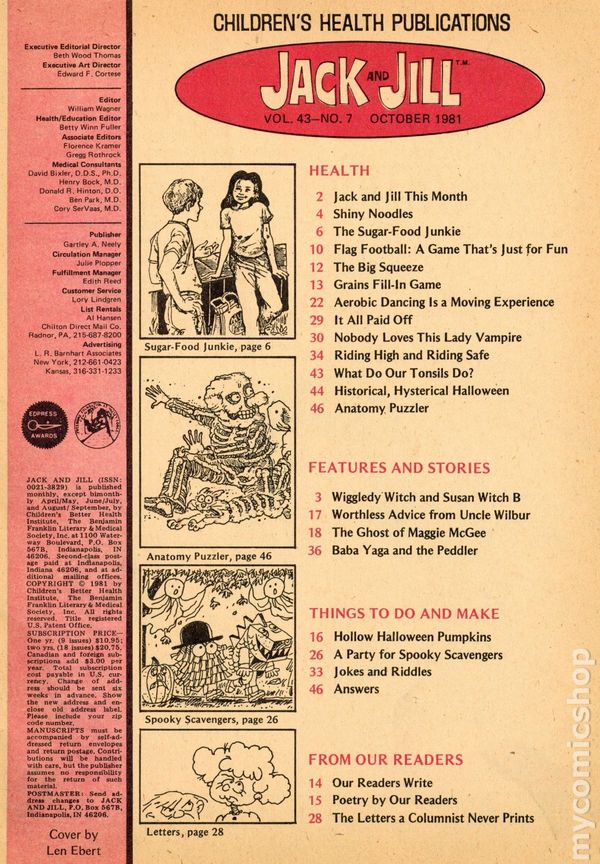 $16 Jack And Jill (vol. 4) #1 POOR; Curtis | low grade - November 1941 Magazine All $26 Jack And Jill (vol. 15) #12 GD; Curtis | low grade - October 1953 Pumpkin Cover Clicking on the links to the eBay listings shown above and then making a purchase may result in MyComicShop earning a commission from the eBay Partner Network.
