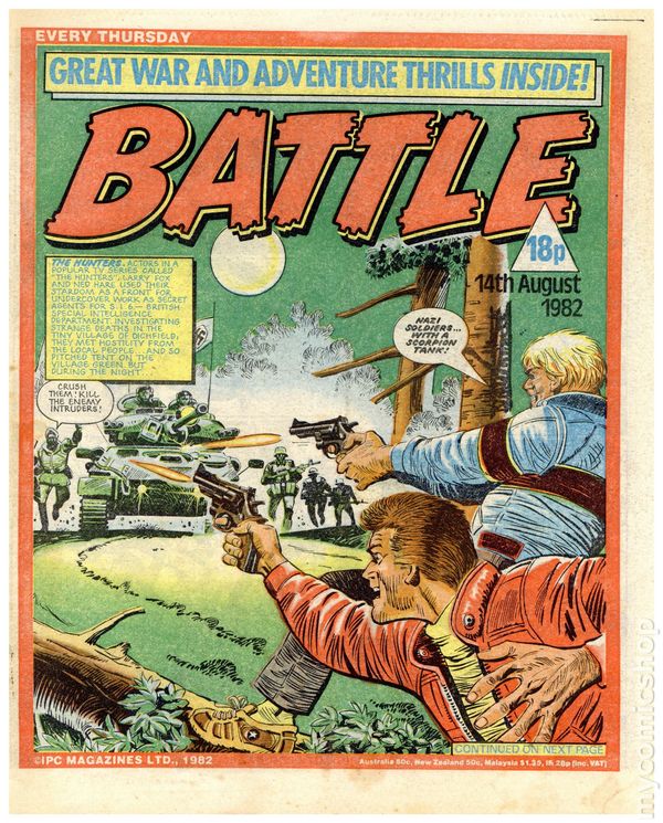 October 9, 1982. Published by IPC Magazines, Ltd. in the U.K. "Tough action war stories every week!" Combined with Valiant (also an IPC publication). 9 x 11 in.; black and white (color centerspread); 32 pages; 18p cover price.
