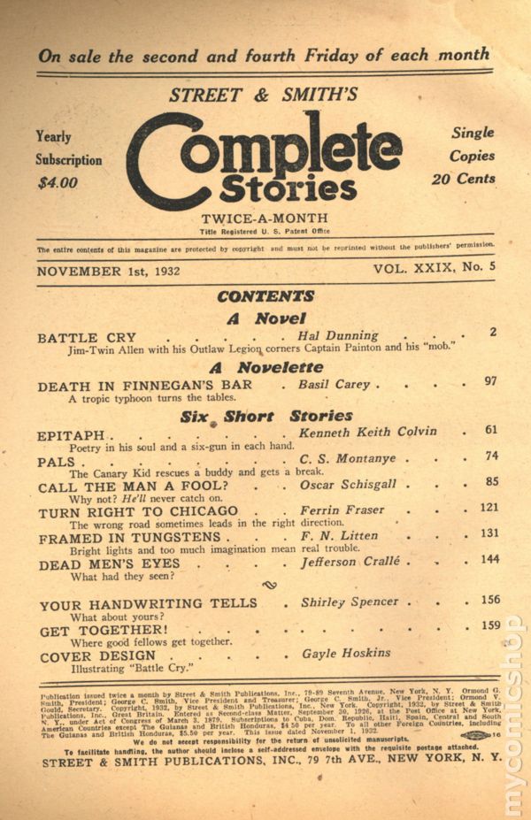 NOTE: For previous issues see Popular Complete Stories (1931-1932 Street and Smith) Cover price $0.20.