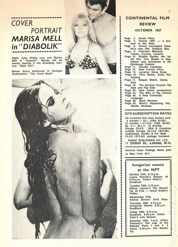 October 1967. UK film magazine that focuses heavily on adult art-house motion pictures. 8" x 11.5", 36 pages, B&W. -MATURE READERS- Cover price $0.50.