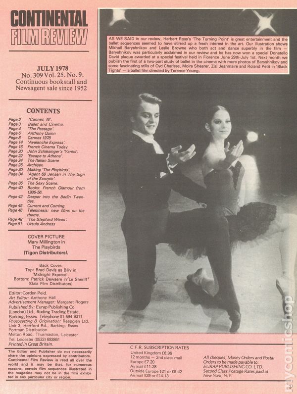 Continental Film Review (1952-1984 Eurap Publishing) UK Magazine comic books 1970-1979