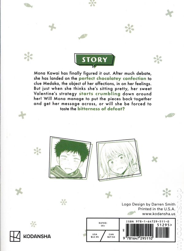 Volume 15 - 1st printing. Story and art by Ran Kuze. Translated by Nicole Frasik. A rom-com between a stoic monk in training vs the cutest girl in high school! Who will win in this heated battle of wills? Mona Kawai has finally figured it out. After much debate, she has landed on the perfect chocolatey confection to clue Medaka, the object of her affections, in on her feelings. But just when she thinks shes sitting pretty, her sweet Valentines strategy starts crumbling down around her! Will Mona manage to put the pieces back together and get her message across, or will she be forced to taste the bitterness of defeat? Softcover, 5-in. x 7-in., 146 pages, B&W. Older Teen (16+) Cover price $12.95.
