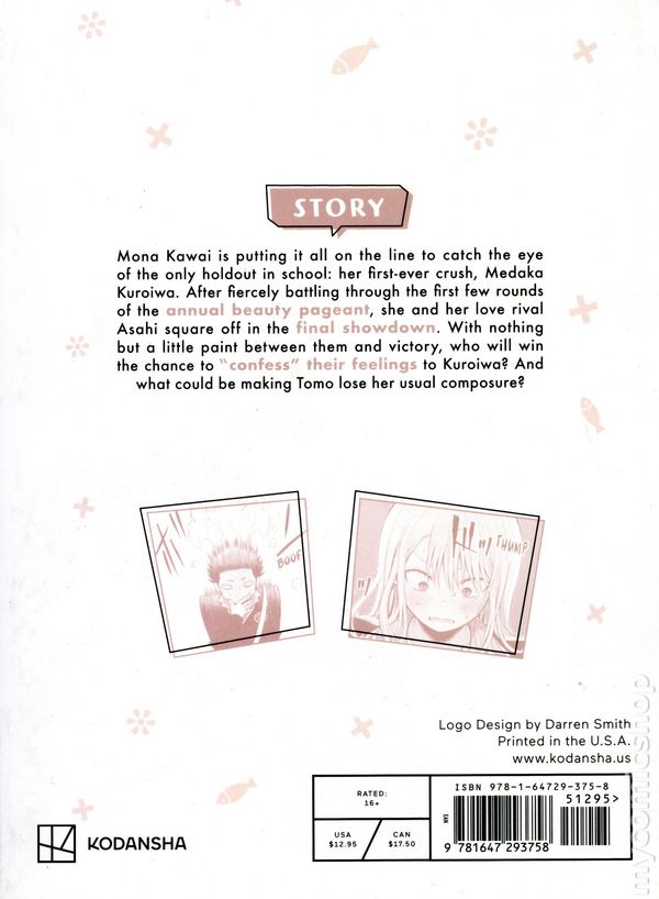 Volume 8 - 1st printing. Story and art by Ran Kuze. Translated by Nicole Frasik. A rom-com between a stoic monk in training vs the cutest girl in high school! Who will win in this heated battle of wills? Mona Kawai is putting it all on the line to catch the eye of the only holdout in school: her first-ever crush, Medaka Kuroiwa. After fiercely battling through the first few rounds of the annual beauty pageant, she and her love rival Asahi square off in the final showdown. With nothing but a little paint between them and victory, who will win the chance to confess their feelings to Kuroiwa? And what could be making Tomo lose her usual composure? Softcover, 5-in. x 7-in., 144 pages, B&W. Older Teen (16+) Cover price $12.95.