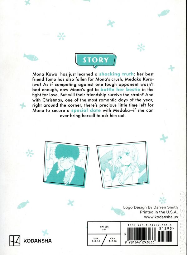 Volume 9 - 1st printing. Story and art by Ran Kuze. Translated by Nicole Frasik. A rom-com between a stoic monk in training vs the cutest girl in high school! Who will win in this heated battle of wills? Mona Kawai has just learned a shocking truth: her best friend Tomo has also fallen for Monas crush, Medaka Kuroiwa! As if competing against one tough opponent wasnt bad enough, now Monas got to battle her bestie in the fight for love. But will their friendship survive the strain? And with Christmas, one of the most romantic days of the year, right around the corner, theres precious little time left for Mona to secure a special date with Medaka—if she can ever bring herself to ask him out. Softcover, 5-in. x 7-in., 146 pages, B&W. Older Teen (16+) Cover price $12.95.