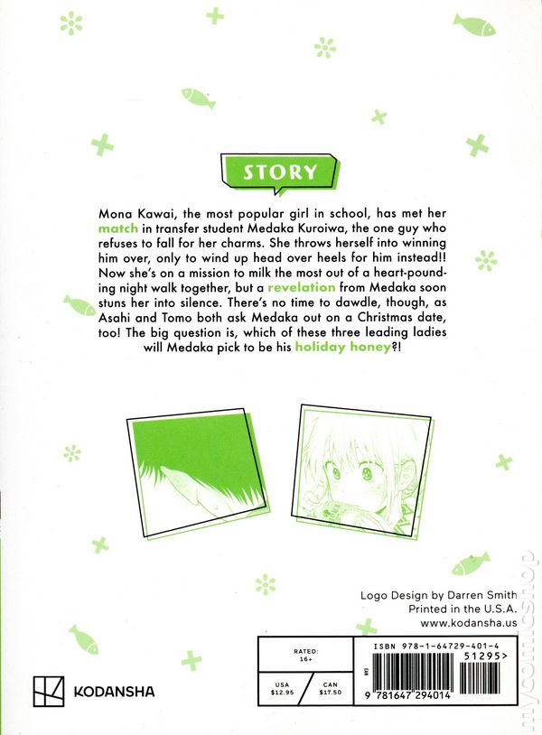 Volume 10 - 1st printing. Story and art by Ran Kuze. Translated by Nicole Frasik. A rom-com between a stoic monk in training vs the cutest girl in high school! Who will win in this heated battle of wills? Mona Kawai, the most popular girl in school, has met her match in transfer student Medaka Kuroiwa, the one guy who refuses to fall for her charms. She throws herself into winning him over, only to wind up head over heels for him instead!! Now shes on a mission to milk the most out of a heart-pounding night walk together, but a revelation from Medaka soon stuns her into silence. Theres no time to dawdle, though, as Asahi and Tomo both ask Medaka out on a Christmas date, too! The big question is, which of these three leading ladies will Medaka pick to be his holiday honey?! Softcover, 5-in. x 7-in., 144 pages, B&W. Older Teen (16+) Cover price $12.95.