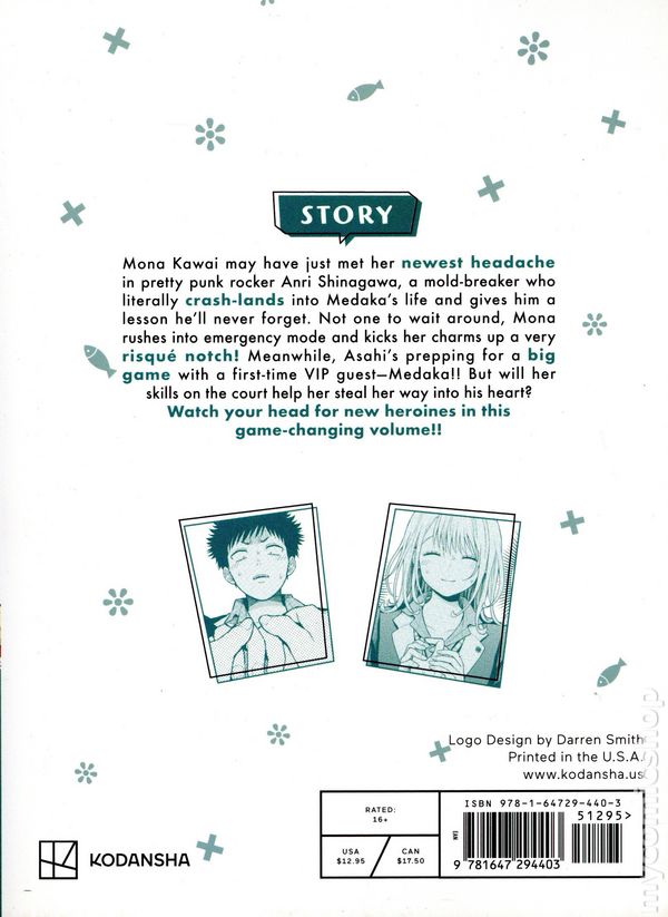Volume 12 - 1st printing. Story and art by Ran Kuze. Translated by Nicole Frasik. A rom-com between a stoic monk in training vs the cutest girl in high school! Who will win in this heated battle of wills? Mona Kawai may have just met her newest headache in pretty punk rocker Anri Shinagawa, a mold-breaker who literally crash-lands into Medakas life and gives him a lesson hell never forget. Not one to wait around, Mona rushes into emergency mode and kicks her charms up a very risqué notch! Meanwhile, Asahis prepping for a big game with a first-time VIP guest—Medaka!! But will her skills on the court help her steal her way into his heart? Watch your head for new heroines in this game-changing volume!! Softcover, 5-in. x 7-in., 146 pages, B&W. Older Teen (16+) Cover price $12.95.