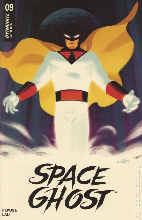 Written by David Pepose. Art by Jonathan Lau. Cover by Michael Cho. GHOSTS OF THE PAST! In this issue: The notorious thief known as Eclipse Woman - an old flame from Space Ghost's early days - unwittingly puts both herself and the Ghost Planet in the crosshairs of the ruthless criminal kingpin known as Boss Parko when she steals a mysterious alien artifact. Will activating the strange relic help the team to escape from Parko's wrath - or will it doom them all? 32 pages, full color. Rated T Cover price $9.99.