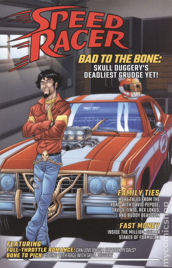 Written by David Pepose. Art by Davide Tinto. Cover by Sean Galloway. The mask comes off! When Speed Racer crosses paths with the mysterious Racer X, sparks fly on and off the streets in a high-octane showdown that pits brother against brother…even if neither of them knows it yet. But when the Mach 5 is stolen--with Spritle and Chim-Chim trapped in the trunk--Speed and Racer X must team up to take down a criminal biker gang led by the deadly Ace Deucey. Buckle up for wild stunts, emotional gut-punches, and the beginning of a bond that could save Speeds life…if it doesnt wreck him first! 33 pages, full color, rated T+. Cover price $4.99.