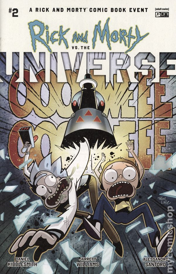 Written by Daniel Kibblesmith. Art by Jarrett Williams. Cover by Troy Little. THE COMIC BOOK EVENT 13.7 BILLION YEARS IN THE MAKING IS JUST GETTING STARTED! Chaotically cosmic creators Daniel Kibblesmith (Loki) and Jarrett Williams (Speed Force) are about to turn everything you know about RICK AND MORTY upside down . . . along with several billion nebulae). Wow, well. Rick and Morty have certainly %&$@ ed things up.  The wedding is clearly off and the Parmesan Universe is out for blood. The Smith family find themselves on the run and they cant even use portal tech to escape! The only person Rick and Morty can turn to now is Mr. Poopy Butthole, who is still harboring some hard feelings toward Rick. Sheesh, is there anyone Rick HASNT pissed off?  Nevertheless, Rick will need his help in order to carry out his plan to REBOOT THE UNIVERSE. Did you think we were joking about this being an EVENT?!? 28 pages, full color. Rated M Cover price $4.99.