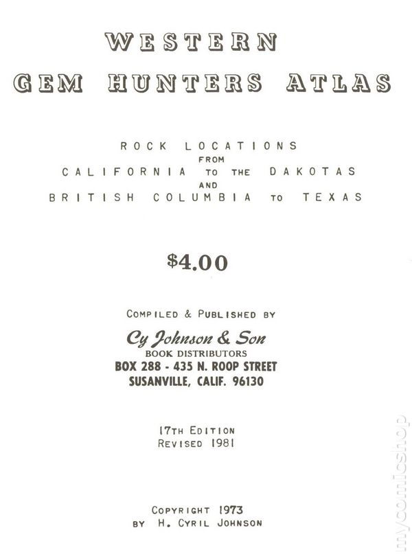 17th Edition - 1981. "A whole book of detailed maps showing gem and mineral locations with mileages and the type of material to be found". 6" x 9", 84 pages, B&W. Cover price $4.00.