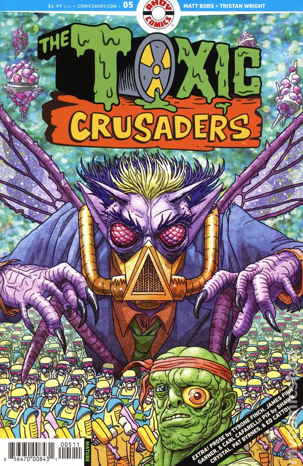 (W) Matt Bors (A) Tristan Wright (CA) Tristan Wright EPIC CONCLUSION, from Toxie master Matt Bors and new art sensation Tristan Wright! When the Smogulans launch their siege of Earth in Tromaville, the Toxic Crusaders will need all the snot NoZone can make, Fungirl can infect, and Major Disaster can throw! SPLAT! 32 pages, full color, not rated. Cover price $4.99.