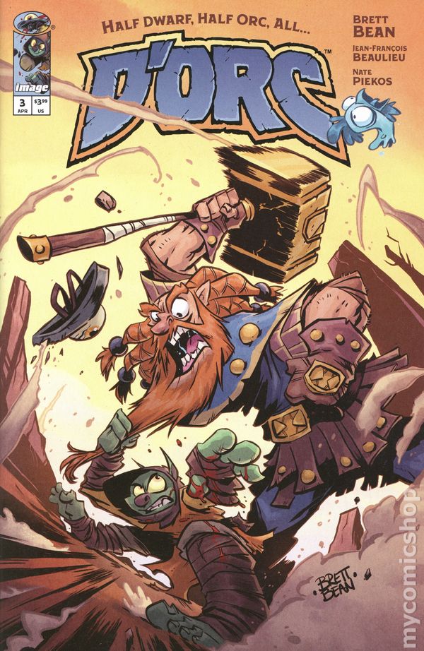 2nd Printing Surprise Variant. (W) Brett Bean (A) Brett Bean, Jean Francois Beaulieu (CA) Brett Bean Armed with nothing but a magical yet ambitiously violent shield, a lonely orphan stumbles headfirst into Sunderaines never-ending war between the Light and Dark. Elves vs. Orcs. Wizards vs. Common Sense. Dragons vs. Literally Everyone. And caught dead-center? D'ORC. With a wholly inconvenient doomsday prophecy, the half dwarf, half orc—all D'ORC—is fated to end the world. Soon, every human, elf, goblin, dwarf, Snargletooth, Necroid, Ice Giant, Trauma Llama, and at least three other unpronounceable magical creatures, will know his name and want him dead. There will also be a chicken. Join fan-favorite artist BRETT BEAN (I HATE FAIRYLAND, DUNGEON CRAWLER CARL THE CROCODILE), colorist JEAN-FRANÇOIS BEAULIEU (I HATE FAIRYLAND), and letterer NATE PIEKOS (MINOR THREATS) for a hilarious high-fantasy romp perfect for fans of CONAN, LORD OF THE RINGS, and of course, GERT's deadpan humor. 24 pages, full color, rated T+. Cover price $3.99.