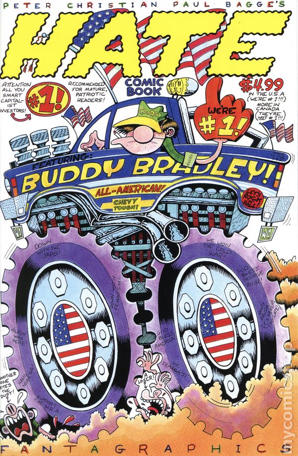 (W) Peter Bagge (A) Peter Bagge (CA) Peter Bagge To celebrate Fantagraphics' 50th anniversary in 2026, we are proud to bring back this era-defining classic: the comic that made Buddy Bradley a Gen-X slacker antihero! The Seattle Weekly once wrote, 20 years from now, when people wonder what it was like to be young in 1990s Seattle, the best record we'll have is Hate. This legendary comic, introducing Buddy Bradley and his loser roommates Stinky and George, remains a defining icon of grunge-era alternative culture, and a riotous look at aimless youth. 24 pages, not rated, B&W Cover price $4.99.