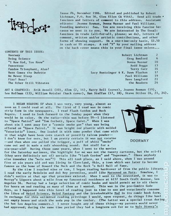 Trap Door (1983-2018 Robert Lichtman) Fanzine comic books 1986