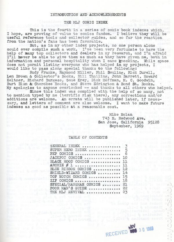 MLJ Comic Index (1969 Mike Nolan) Fanzine comic books