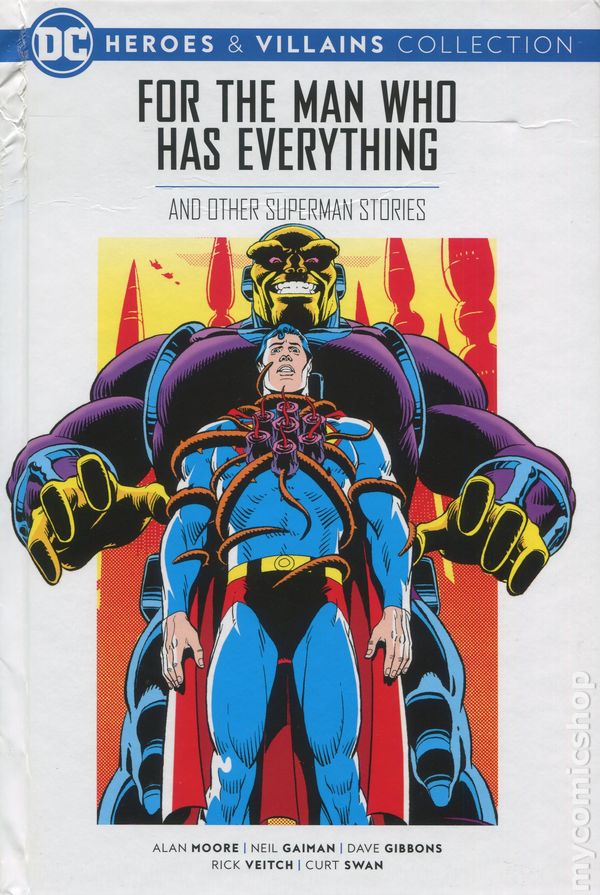 UK Series. Volume 39 of the DC Heroes & Villains Collection. Collects "For the Man who Has Everything from Superman Annual #11; "Whatever Happened to the Man of Tomorrow?" from Superman #423 and more. Written by Neil Gaiman and Alan Moore. Art by Dave Gibbons, Rick Veitch, and Curt Swan. Bolstered by a bonus feature detailing how Moore and Gaimans experiences with DC Comics and Superman continuity shaped their careers, plus an afterword by Gaiman, these are some of the finest Superman stories ever published. Hardcover, 176 pages, full color.