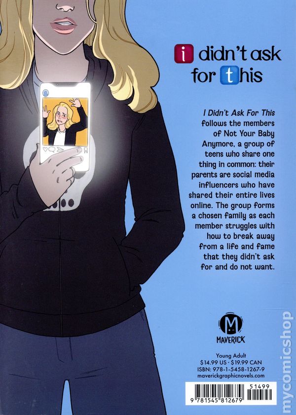 1st printing. Written by Jennie Wood. Art and cover by Josh Cornillon. If your entire life was online against your will--if everyone knew about your potty training, your first breakup, and even your coming out story--how would you feel? I Didnt Ask For This follows the members of Not Your Baby Anymore, a group of kids who share one thing in common: their parents are social media influencers who have shared their entire lives online. The group forms a chosen family as each member struggles with how to break away from a life and fame that they didnt ask for and do not want. Softcover, 6-in.x 8 1/2-in., 208 pages, full color. Young Adult Cover price $14.99.