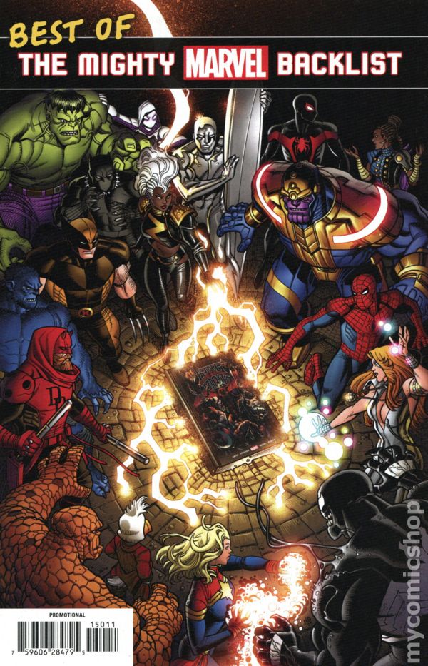 One-off issue with comic titles and arc synopsis for top selling Marvel books.
