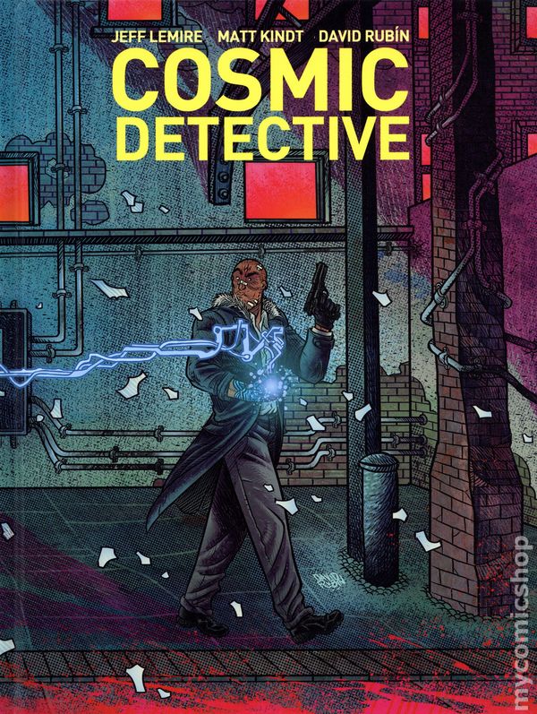 1st printing. Written by Jeff Lemire and Matt Kindt. Art and cover by David RubÃn. New York Times-bestselling writers JEFF LEMIRE (GIDEON FALLS, DESCENDER), MATT KINDT (BANG!, MIND MGMT), and internationally acclaimed artist DAVID RUBÍN (ETHER, BEOWULF) unite on this original graphic novel, COSMIC DETECTIVE. An epic science fiction mystery that asks: when a God is murdered, who solves the crime? Enter our Detective. The murder of a god threatens to tear apart the very fabric of our reality. Only our detective stands in the way of utter destruction. But will the mystery he uncovers be worse than the disaster hes trying to avert? And will his mind crack under the revelations hes about to uncover before he can do anything about it? Hardcover, 9-in. x 12-in., 192 pages, full color.