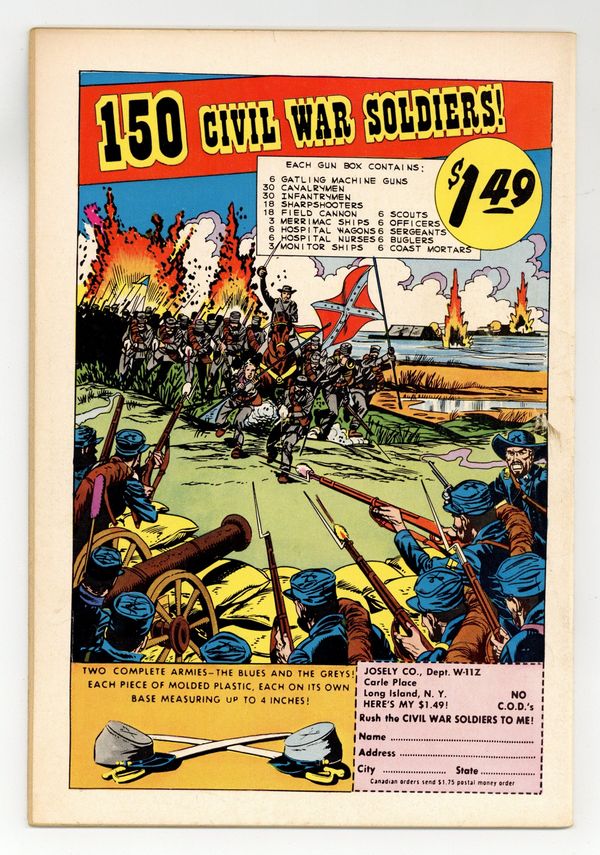 Starts Jan 26 First 12-cent cover price. Cover pencils by Ross Andru, inks by Mike Esposito. "Wonder Woman - Battle Prize," script by Robert Kanigher, pencils by Ross Andru, inks by Mike Esposito; Steve Trevor challenges Mer-Man to a contest to prove which is better suited to Wonder Woman's love. "Part Two: Wonder Woman - Battle Prize!", script by Robert Kanigher, pencils by Ross Andru, inks by Mike Esposito. "Part Three: Wonder Woman - Battle Prize," script by Robert Kanigher, pencils by Ross Andru, inks by Mike Esposito; Wonder Woman immediately falls in love with Sir Galahad, Knight with a flying horse and a flying saucer. "Part Four: Wonder Woman - Battle Prize!", script by Robert Kanigher, pencils by Ross Andru, inks by Mike Esposito; Wonder Woman discovers Sir Galahad is actually an amoeba from outer space with a hate for all Amazons. 36 pages, Full Color. Cover price $0.10.