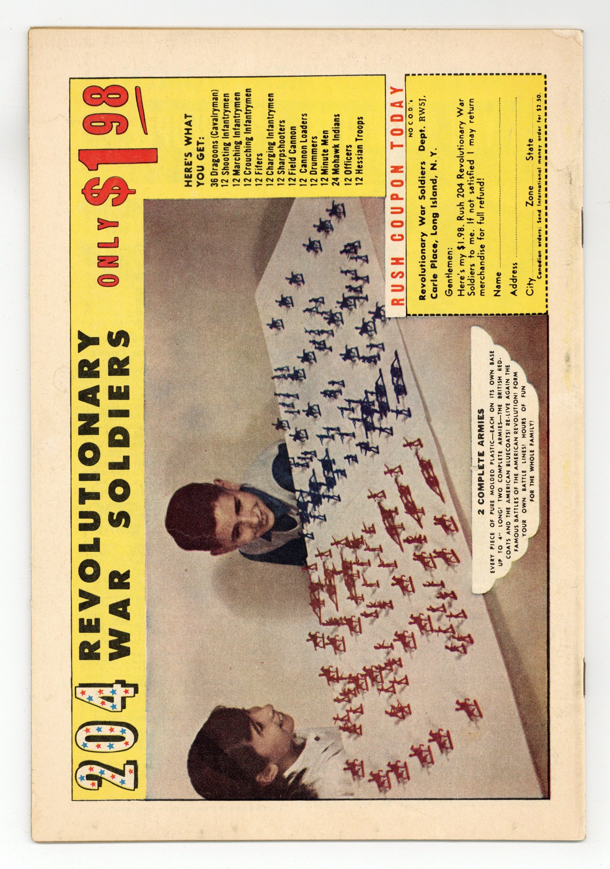 Starts Jan 3 Cover by Harry G. Peter. "The Shrinking Formula," script by Robert Kanigher, art by Harry G. Peter; Shrunken to miniscule size and hunted by thugs, Wonder Woman races to complete an enlarging formula to save herself and her friends. "The Planet of Plunder," script by Robert Kanigher, art by Harry G. Peter; Wonder Woman faces a gauntlet of trials to rescue the Holliday Girls, caught in a coup in the republic of Neptunia. Wonder Women of History: four-page Jenny Lind bio, art by Paul Reinman. Two-page text story, "You Name It" by Lee Goldsmith. "The Racketeer of Magic," script by Robert Kanigher, art by Harry G. Peter; A charlatan posing as a magician from the future uses an Amazon invention to determine how best to outwit Wonder Woman. 52 Pages, Full Color. Cover price $0.10.