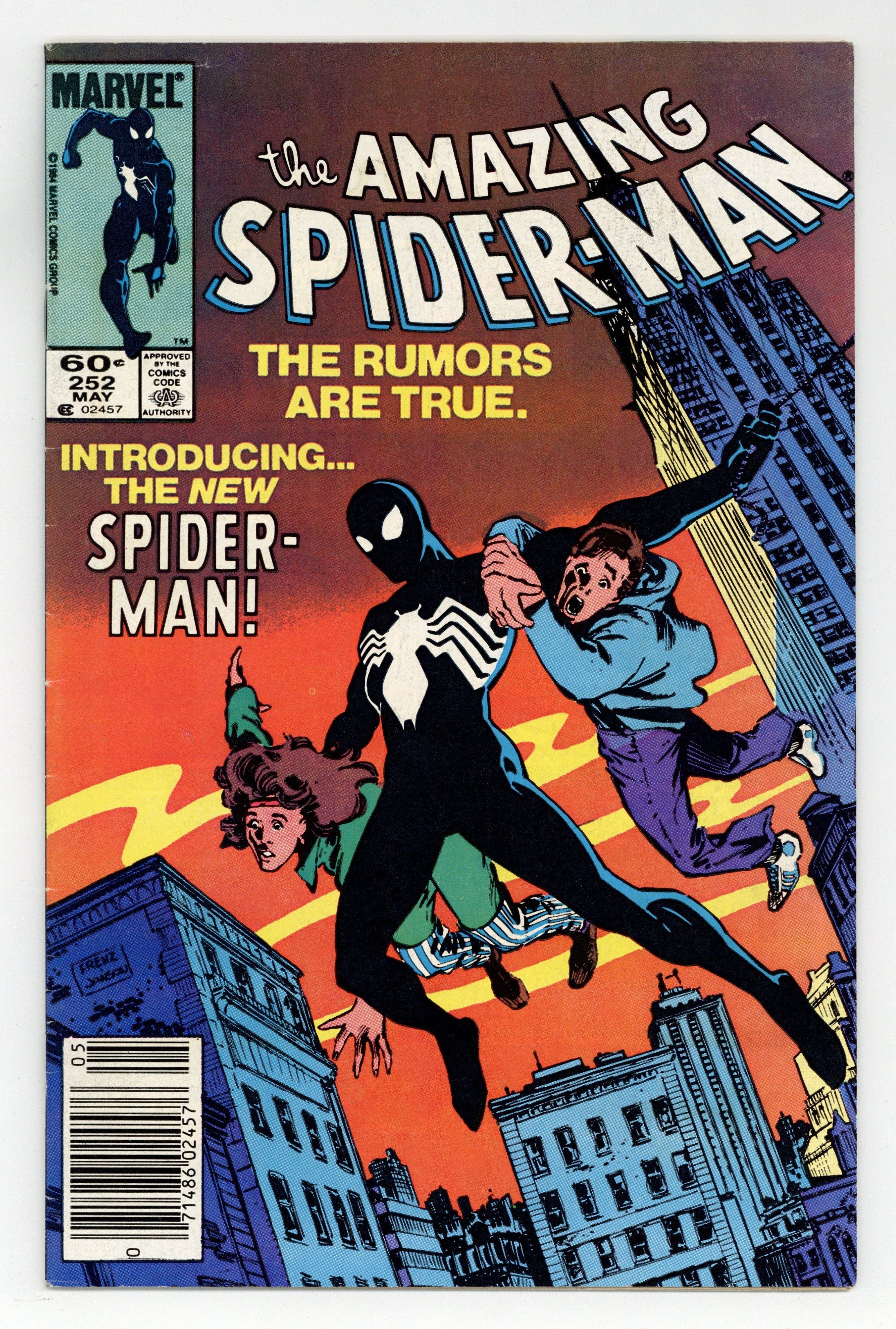 Tags: Chronological Appearances of Spider-Man's Black Costume (part 09 (1st Official Debut)), Marvel Legacy Numbering: Amazing Spider-Man (part 252), Secret Wars (1984) (part Aftermath 01), Spider-ManAmazing Spider-Man (1963 1st Series) 252N VG+ 4.5 Newsstand Variant