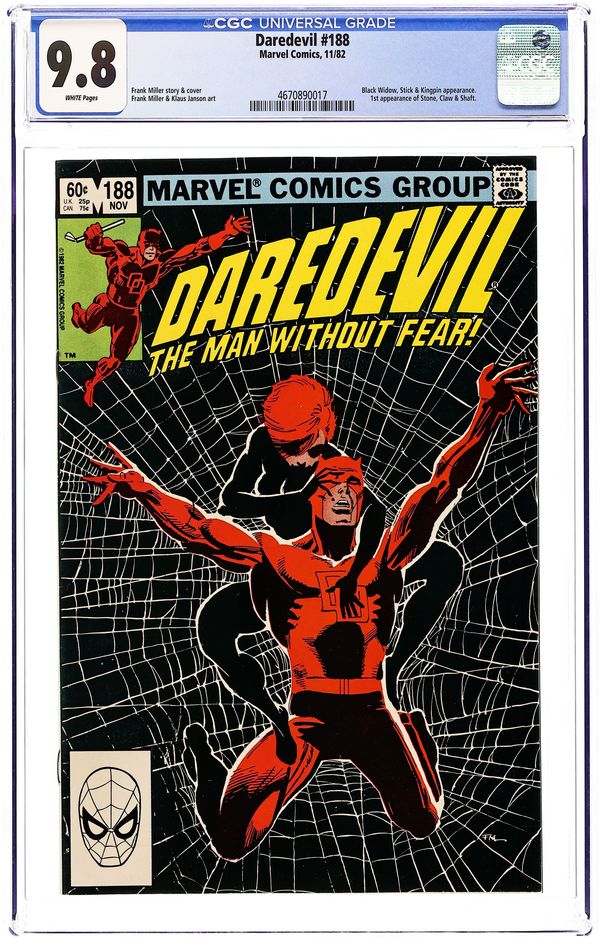 Direct Edition. Cover art by Frank Miller. The Widow's Bite, script by Frank Miller, pencils by Frank Miller (layouts) and Klaus Janson (finished art), inks by Klaus Janson; The Widow is dying of poison she got in a fight with the Hand and is desperately trying to find Daredevil to help; Matt is recovering his hyper senses in an isolation chamber under the watchful eye of Stick and his ninja. Frank Miller's splash page for this issue demonstrating the difference between Frank Miller's rough breakdown sketch and Klaus Janson's pencilled art; Replaces letters page. 36 pgs. Cover price $0.60. Cover price $0.60.