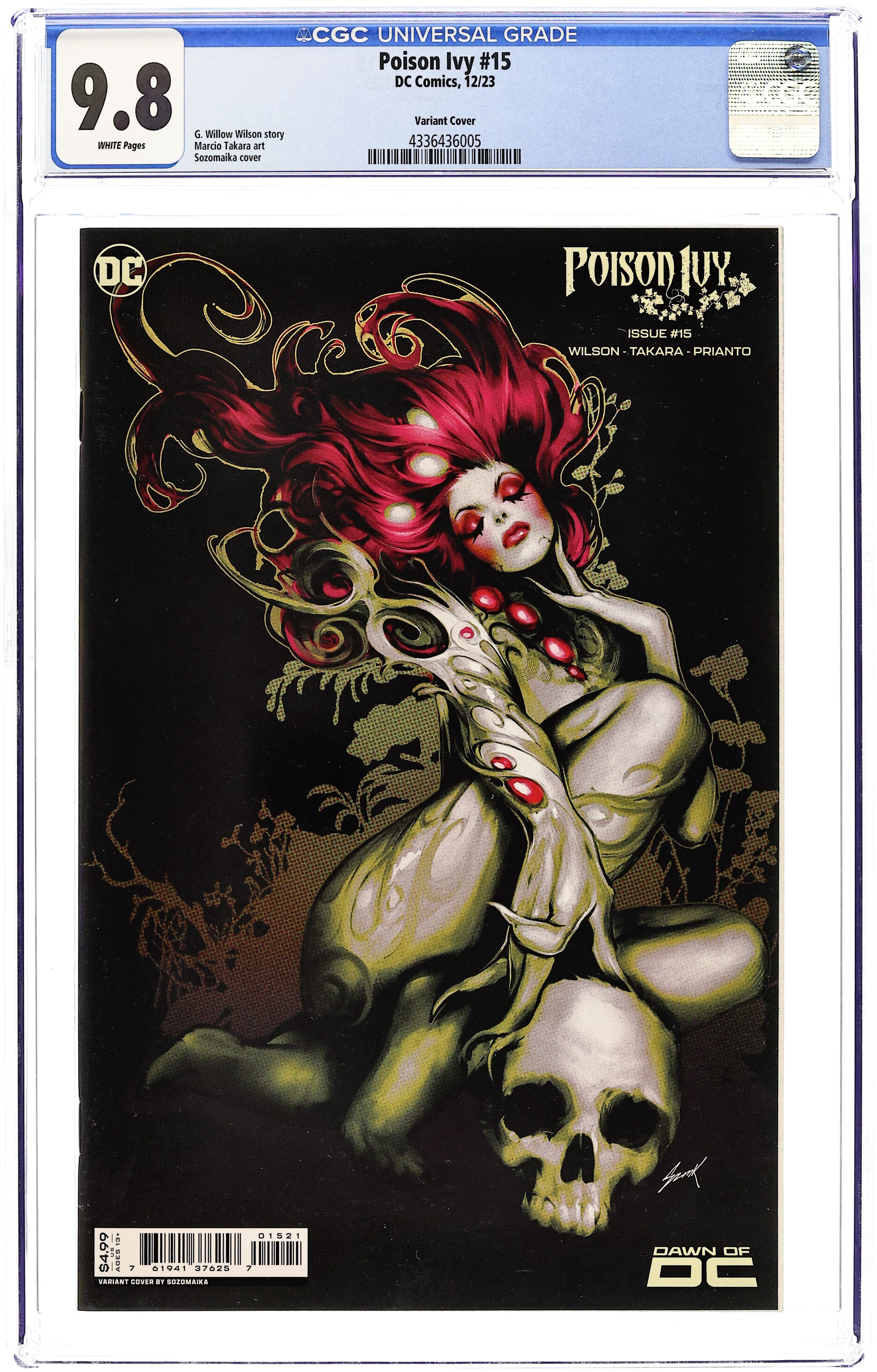 Limited 1 for 50 Retailer Incentive Variant Cover. Written by G. Willow Wilson. Art by Marcio Takara. Cover by David Nakayama. BACK IN GOTHAM CITY! As Poison Ivy investigates the inner workings of a strange new skyscraper in Gotham, she finds herself up to her neck in a surreal and slimy mystery. And at its center? A brand-new villain in the Poison Ivy pantheon of rogues! Plus...is Janet-from-HR cheating on Ivy?! 32 pages full color. Rated T+ Cover price $4.99.