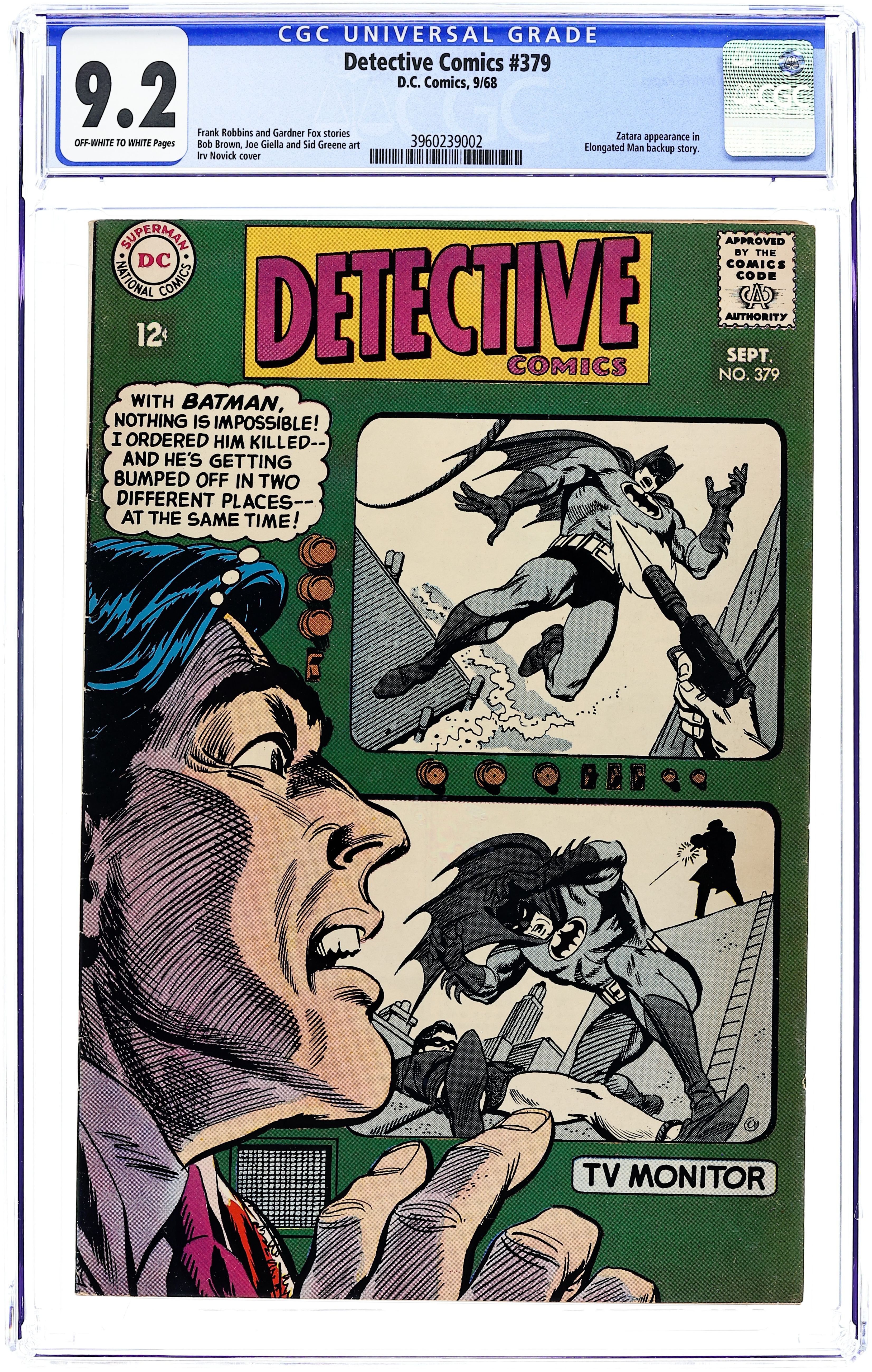 Written by Frank Robbins. Art by Bob Brown and Joe Giella. Cover by Irv Novick. Two Killings for the Price of One!; Alfred appears as Batman, who must be in two places at once due to a blackmail attempt on Robin, who is held hostage. Written by Gardner Fox. Art by Sid Greene. The Elongated Man's Magic Moment!; after retiring from crime-fighting, Zatara has opened a magic shop; Ralph Elongated Man Dibny gains the magicians abilities by accident. 36 pgs. Cover price $0.12.