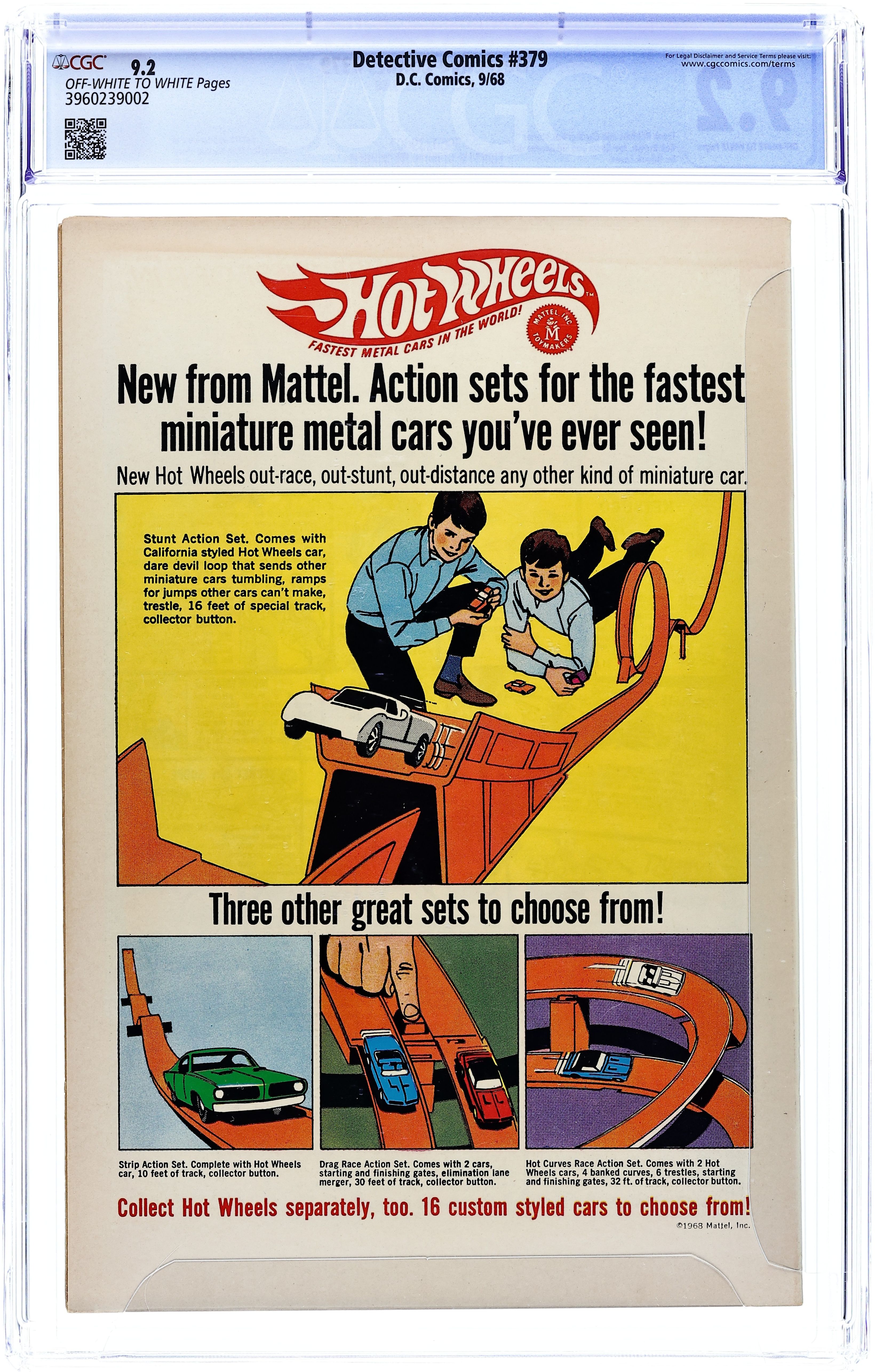 Cover by Nick Cardy. "The Night Has a Thousand Fears!", script by Frank Robbins, pencils by Bob Brown, inks by Frank Giacoia; Batman develops a fear of the dark when he accidentally sniffs a packet of drugs a smuggler has planted in Bruce Waynes luggage. "Sign of the Two Fingers!", script by Elliot Maggin, art by Dick Giordano; The Elongated Man tries to solve the mystery of an invisible dog and is forced to commit robbery or see his wife killed. 36 pgs., full color. $0.20. Cover price $0.20.