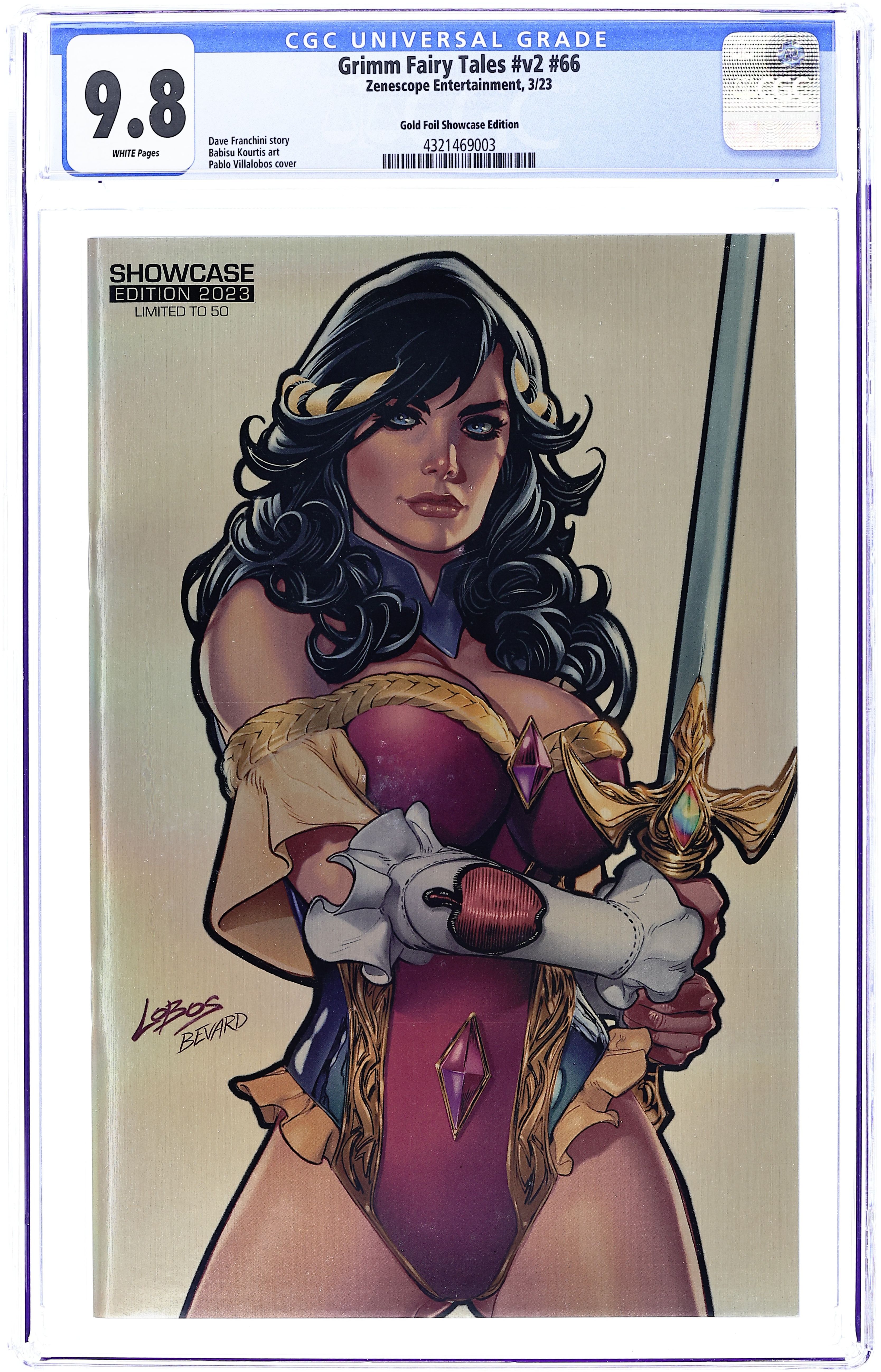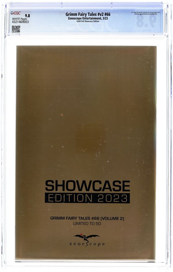 Published Mar 2023 by Zenescope Entertainment.Grimm Fairy Tales (2016 2nd Series) 66SHOWCASE.2023.GOLD.A CGC 9.8
