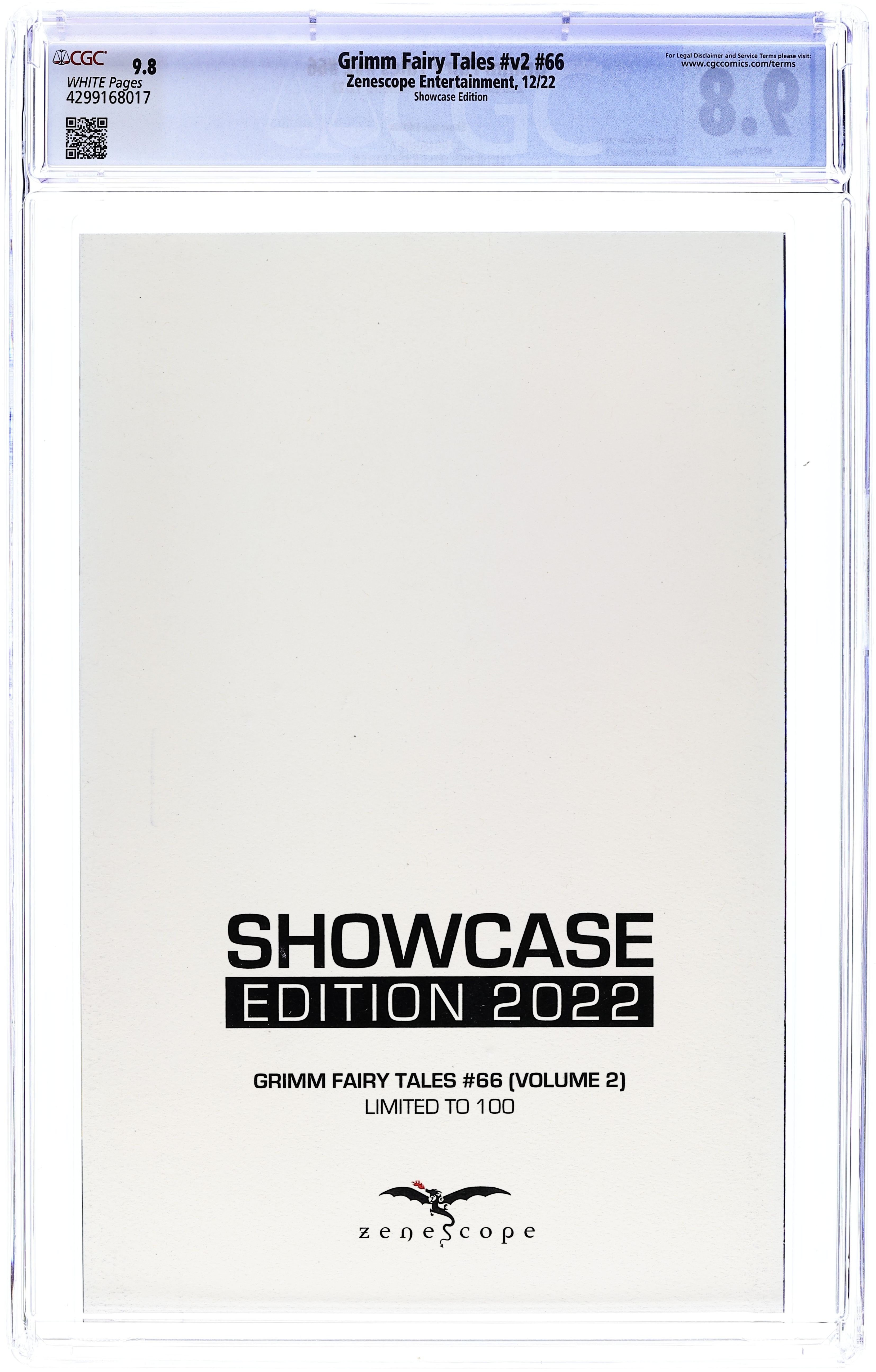 Published Dec 2022 by Zenescope Entertainment.Grimm Fairy Tales (2016 2nd Series) 66SHOWCASE.2022.B CGC 9.8