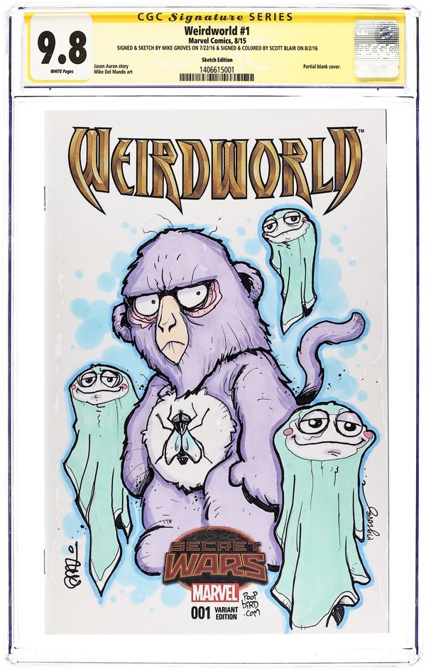 - Signed & Sketch by Mike Groves on 7/22/16 & Signed & Colored by Scott Blair on 8/2/16. Sketch Edition.