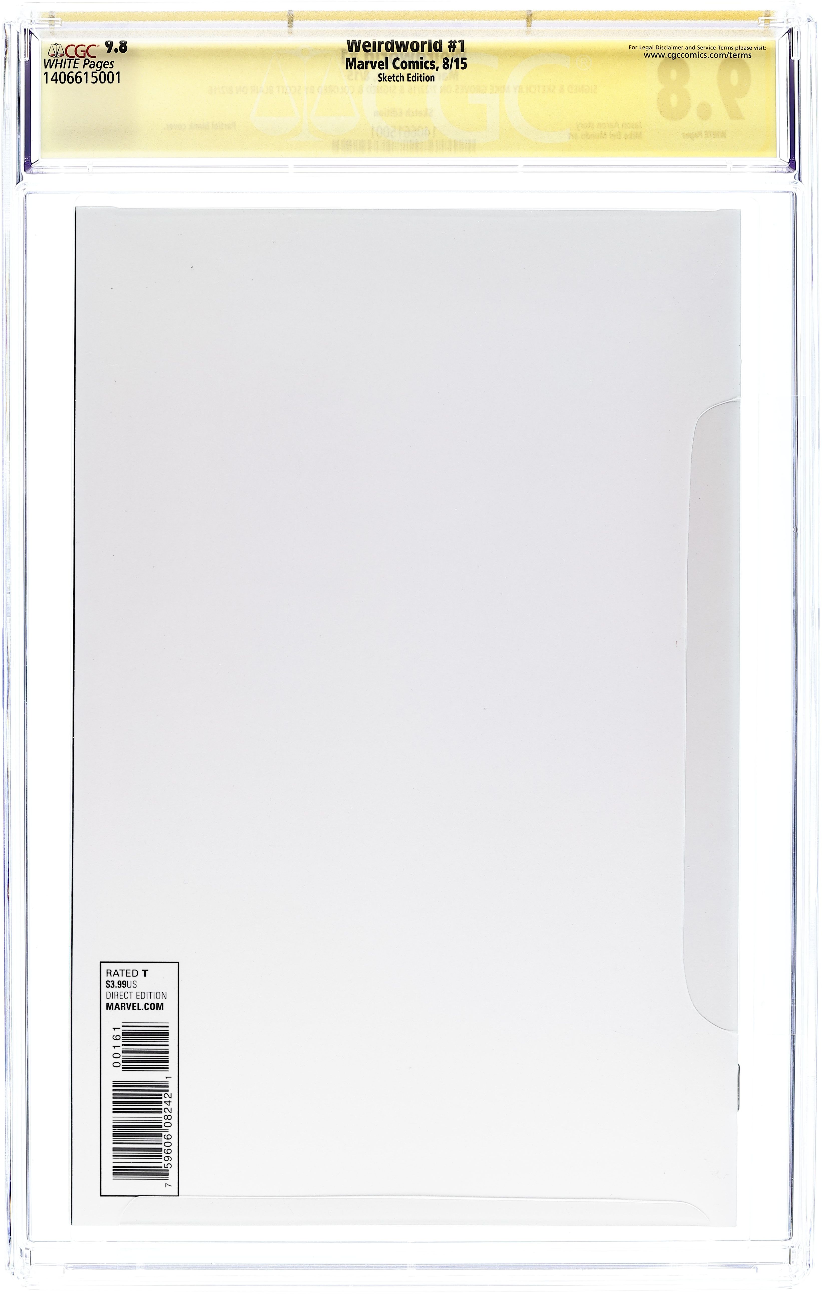 Blank Cover. Written by Jason Aaron. Art by Mike Del Mundo. Welcome to the wildest, most dangerous new corner of the Marvel Universe. Welcome to Weirdworld. A world of swords and sorcery and strange, perverted science. A world where one barbarian walks alone, on a dark and savage quest though all things weird and fantastic from throughout Marvel history. His name is Arkon. A lost man in a lost world. Follow him if you dare. 28 pages, full color. Rated T Cover price $3.99.