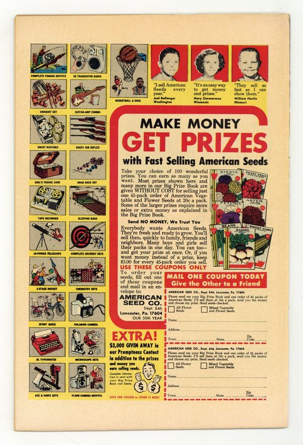 Ends Feb 16 9:40 PM CST Bid History 5 bids Current Bid $19 Your Secret Max Bid If you'd like to bid, please log in or register. Cover by Jack Kirby and Dick Ayers. Trapped by the Protector! Part 1, script by Stan Lee and Larry Lieber, art by Jack Kirby and Dick Ayers; Ant-Man deals with a dangerous extortionist, who turns out to be disguised as one of the victimized jewelers. [Trapped by the Protector!, Part 2:] Face-to-Face With the Protector!, script by Stan Lee and Larry Lieber, art by Jack Kirby and Dick Ayers. The Magician text story. Afraid to Dream!, art by Don Heck; A man whose dreams come true is terrified when he dreams his own death. The Star Raiders, script by Stan Lee, art by Steve Ditko; A group of escaped convicts turned pirates are tricked into attacking a planet they believe defenseless by a man who claims the inhabitants are midgets neglecting to mention that they are only midgets compared to him. 36 pgs., full color. $0.12. Cover price $0.12.