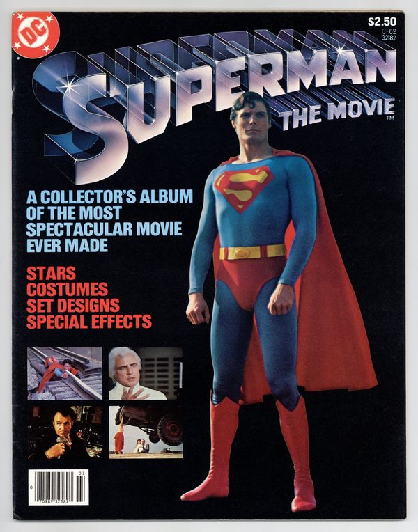 Starts Jan 26 All-New Collectors' Edition: Superman the Movie. Tells the story of Krypton, The Phantom Zone, Smallville, the Fortress of Solitude, the characters from the film, and more, using photos from the film, which came out in 1978 and starred Marlon Brando, Gene Hackman, Christopher Reeve, Margot Kidder, Glenn Ford, Phyllis Thaxter, Jackie Cooper, Trevor Howard, Marc McClure, Terrence Stamp, Valerie Perrine and Ned Beatty. Two-page Superman pinup. 64 pgs. Treasury-sized. Size is 10 x 13-1/2" (about the size of a Life magazine). Cover price $2.50. Cover price $2.00.
