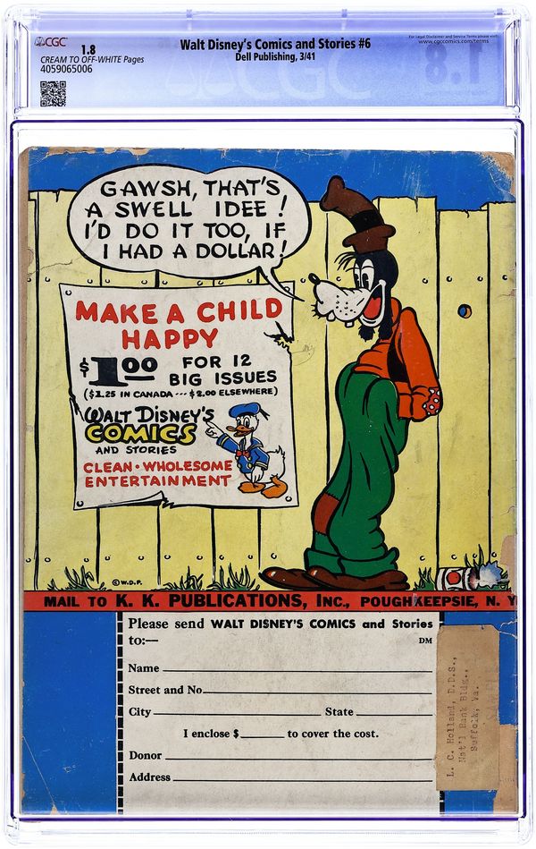 Tags: Disney Ducks & MicePublished Mar 1941 by Dell/Gold Key.Walt Disney's Comics and Stories (1940 Dell/Gold Key/Gladstone) 6 CGC 1.8