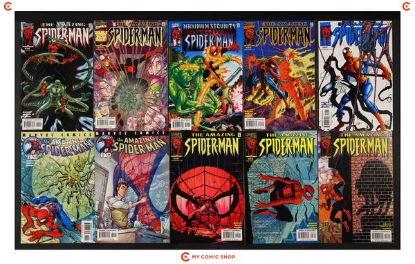 Issues 434B-441 of Amazing Spider-Man (1963 1st Series), and issues 1A.D, 2A of Amazing Spider-Man (1998 2nd Series). Most will grade in the FN to VF range.