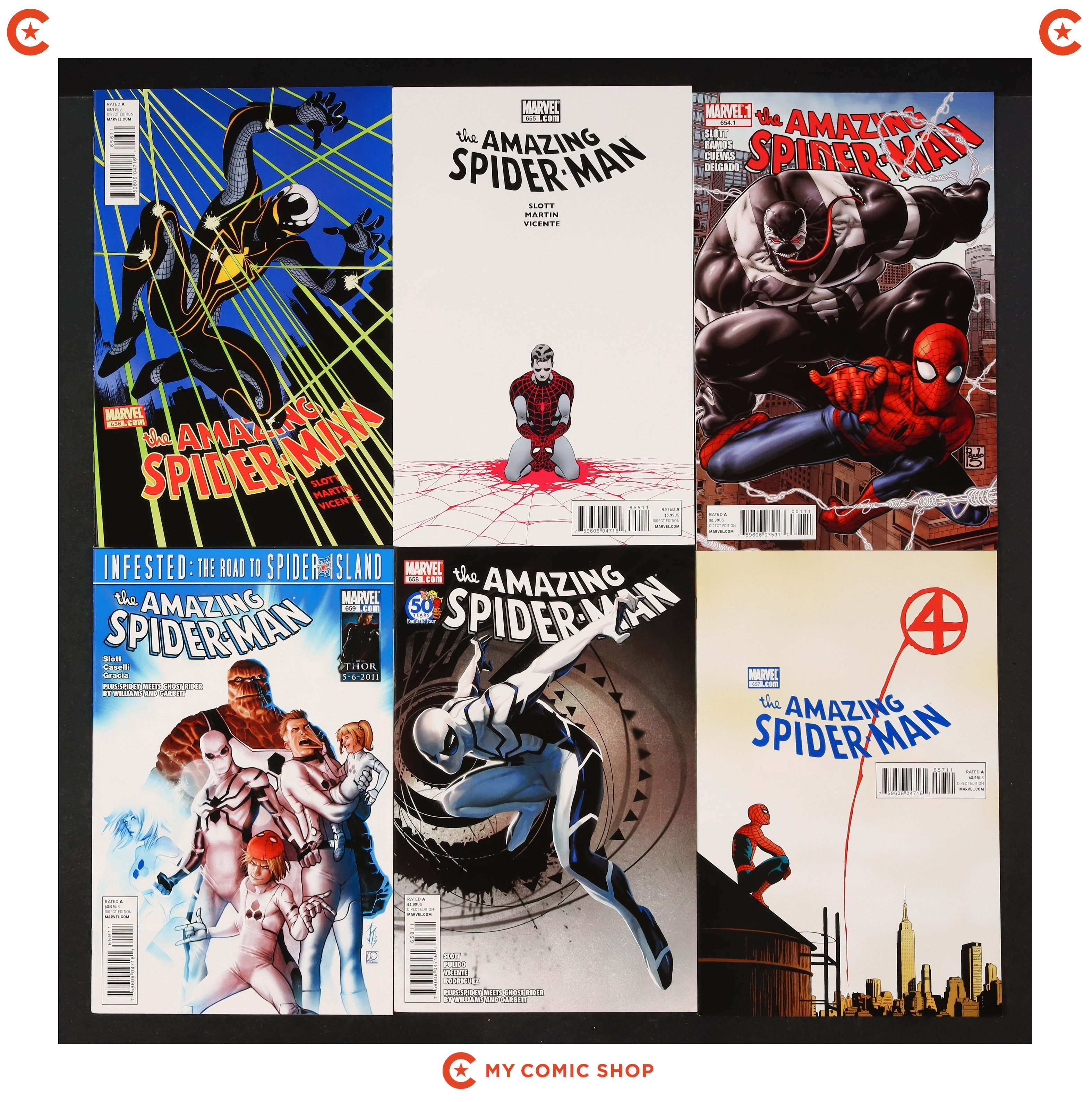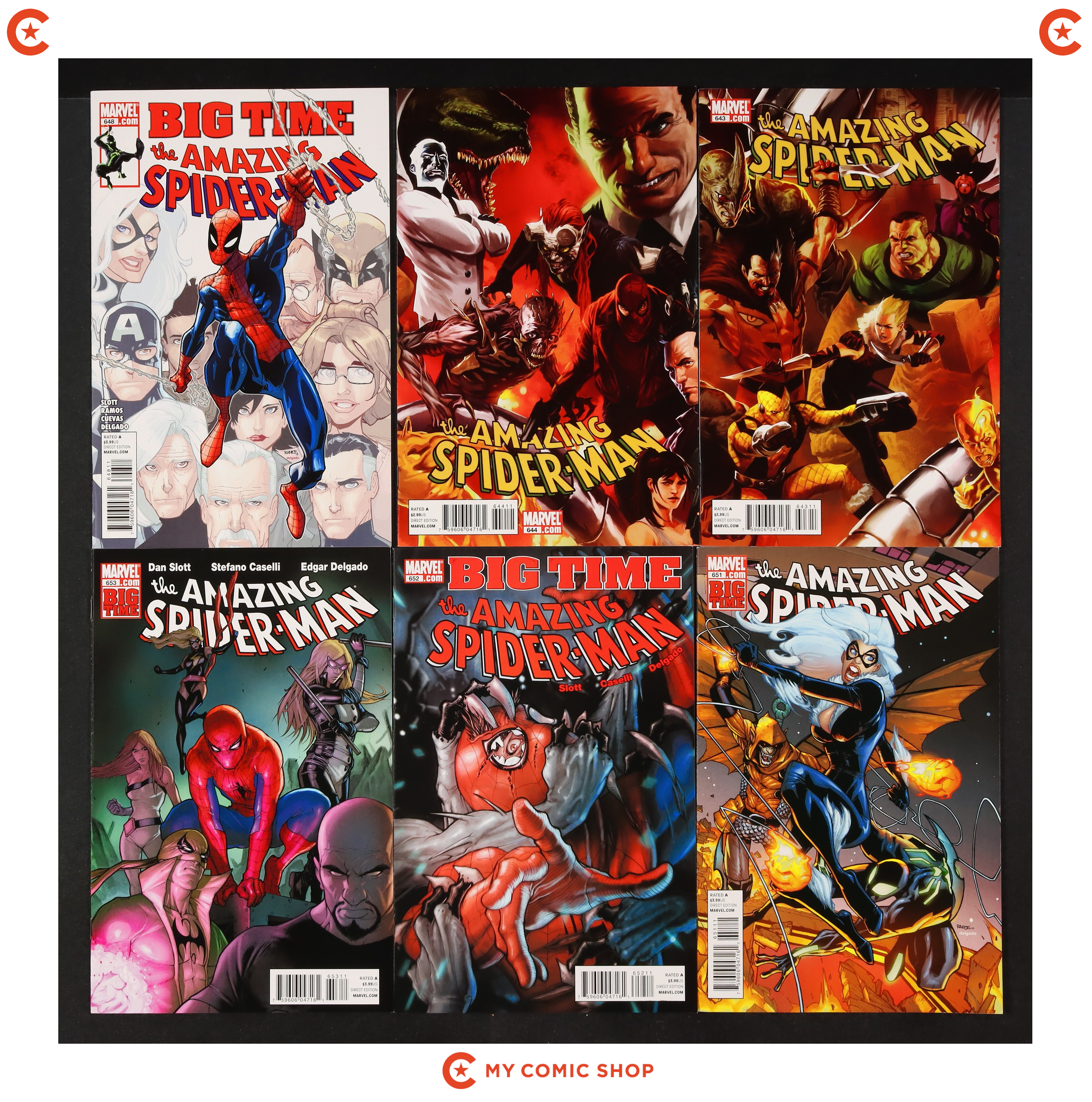 Issues 643A, 644A, 648A, 651A, 652A, 653, 654.1, 655A-659A of Amazing Spider-Man (1998 2nd Series). Most will grade in the VF- to VF+ range.