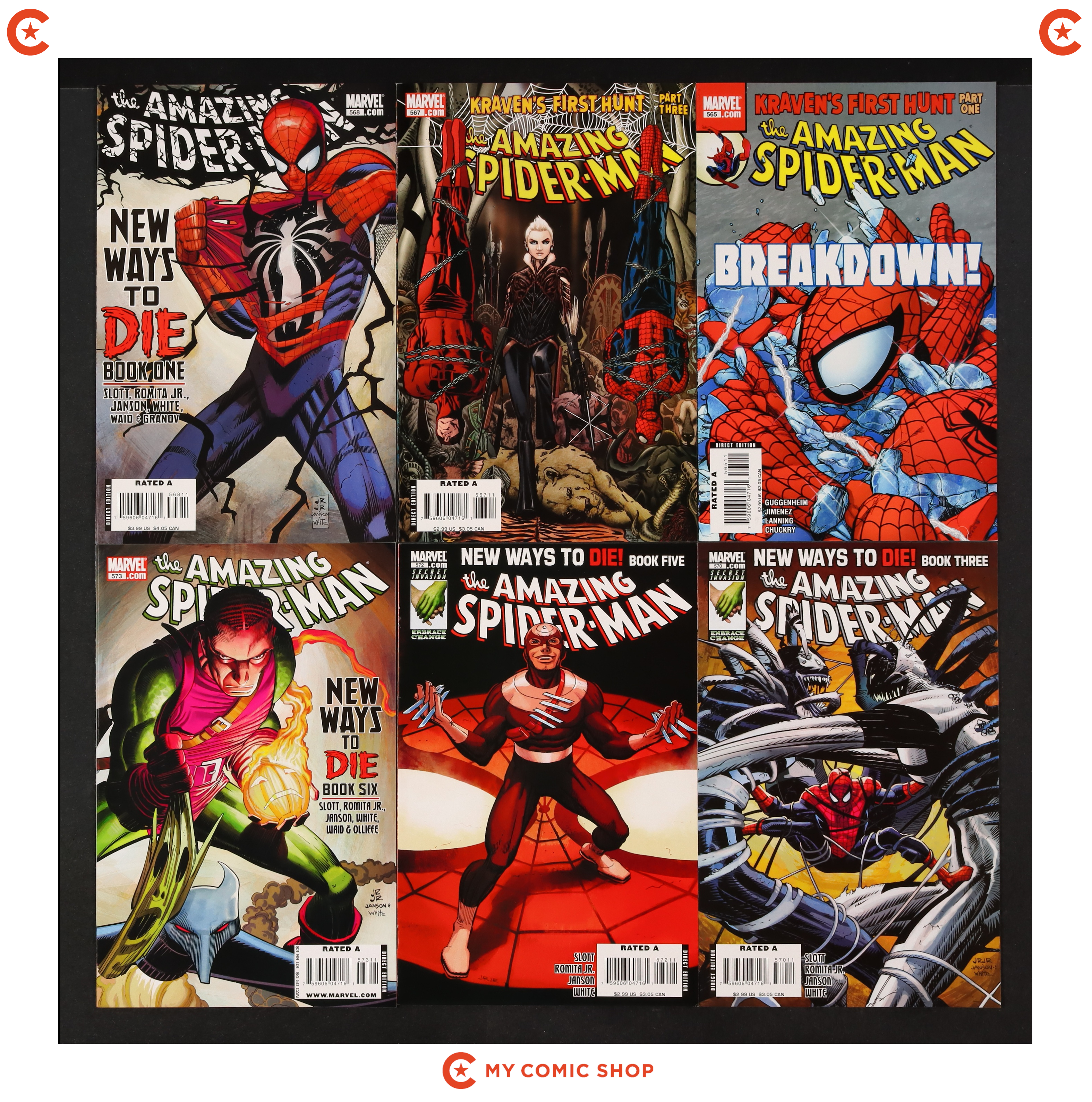 Issues 55-58 and 500-505 of Amazing Spider-Man (1998 2nd Series). Most will grade in the VF to FN range.
