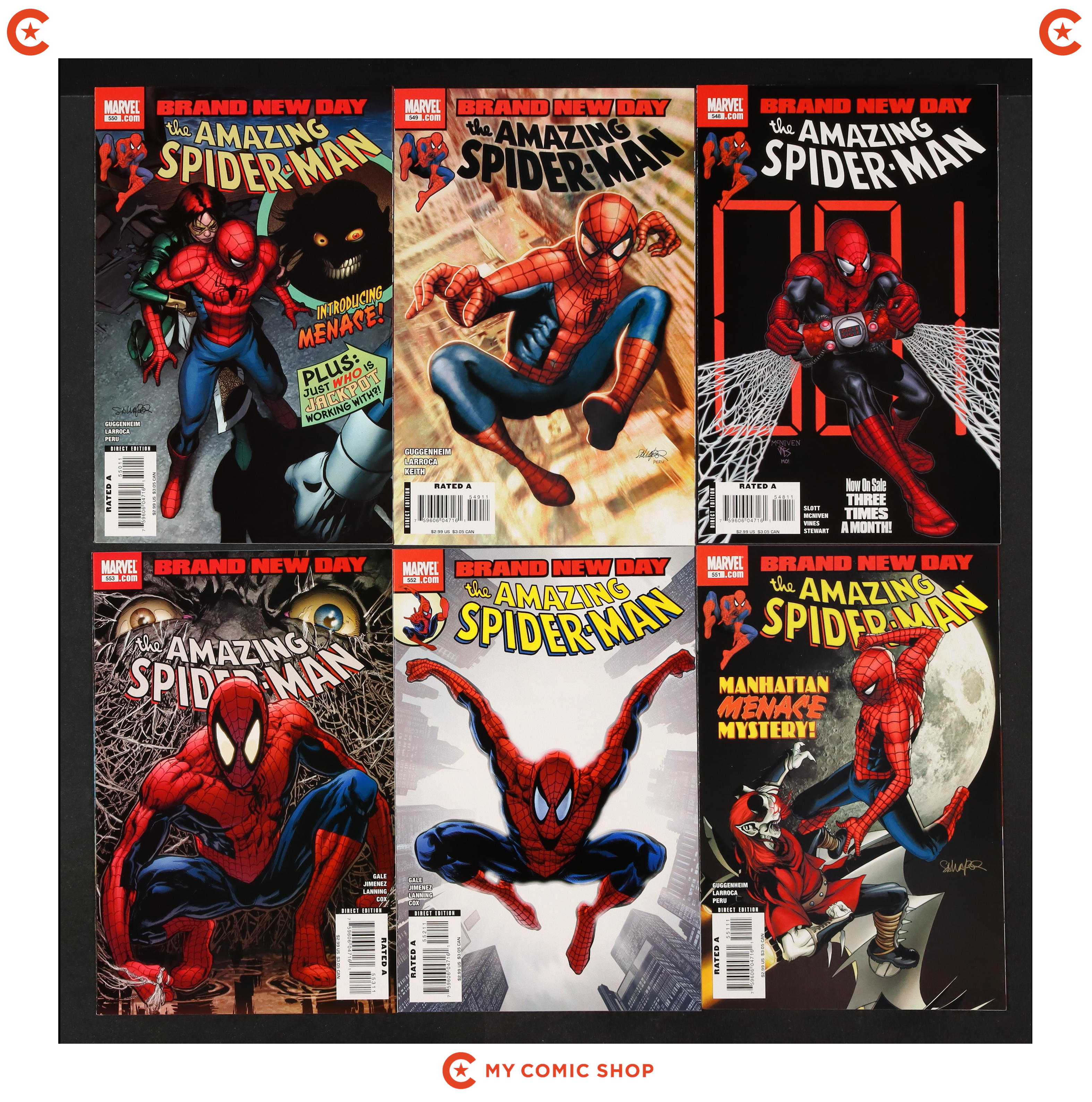 Issues 537B, 542, 544A-546A, 547, 548, 549A, 550, 551, 552A, 553 of Amazing Spider-Man (1998 2nd Series). Most will grade in the VF- to VF/NM range, with #542 grading at FN-.