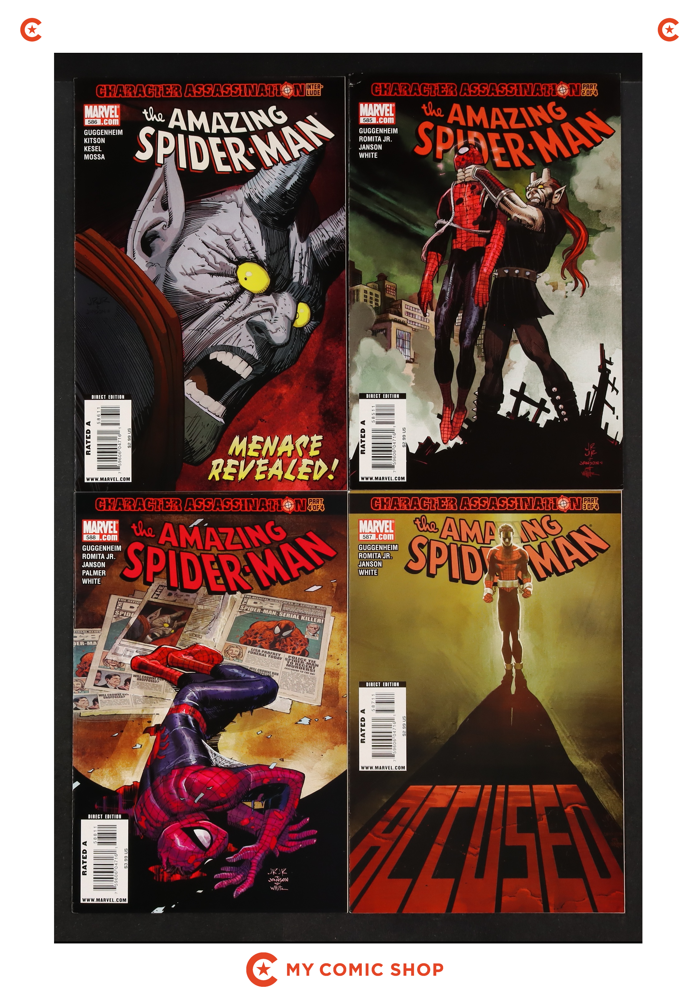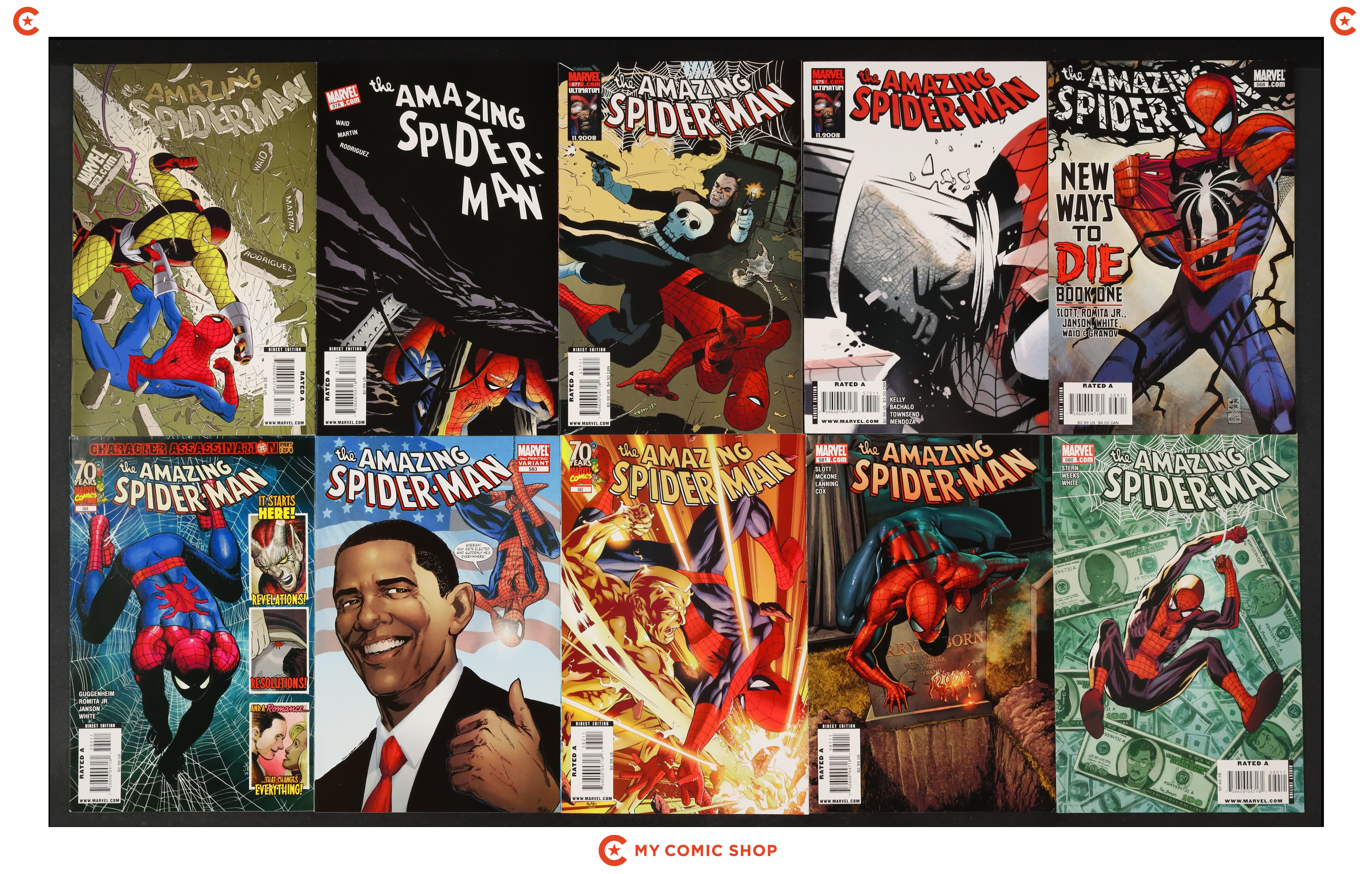 Issues 568A, 575, 577A, 578, 579A, 580, 581A, 582, 583B.3RD, 584-588 of Amazing Spider-Man (1998 2nd Series). Most will grade in the FN/VF to VF+ range.