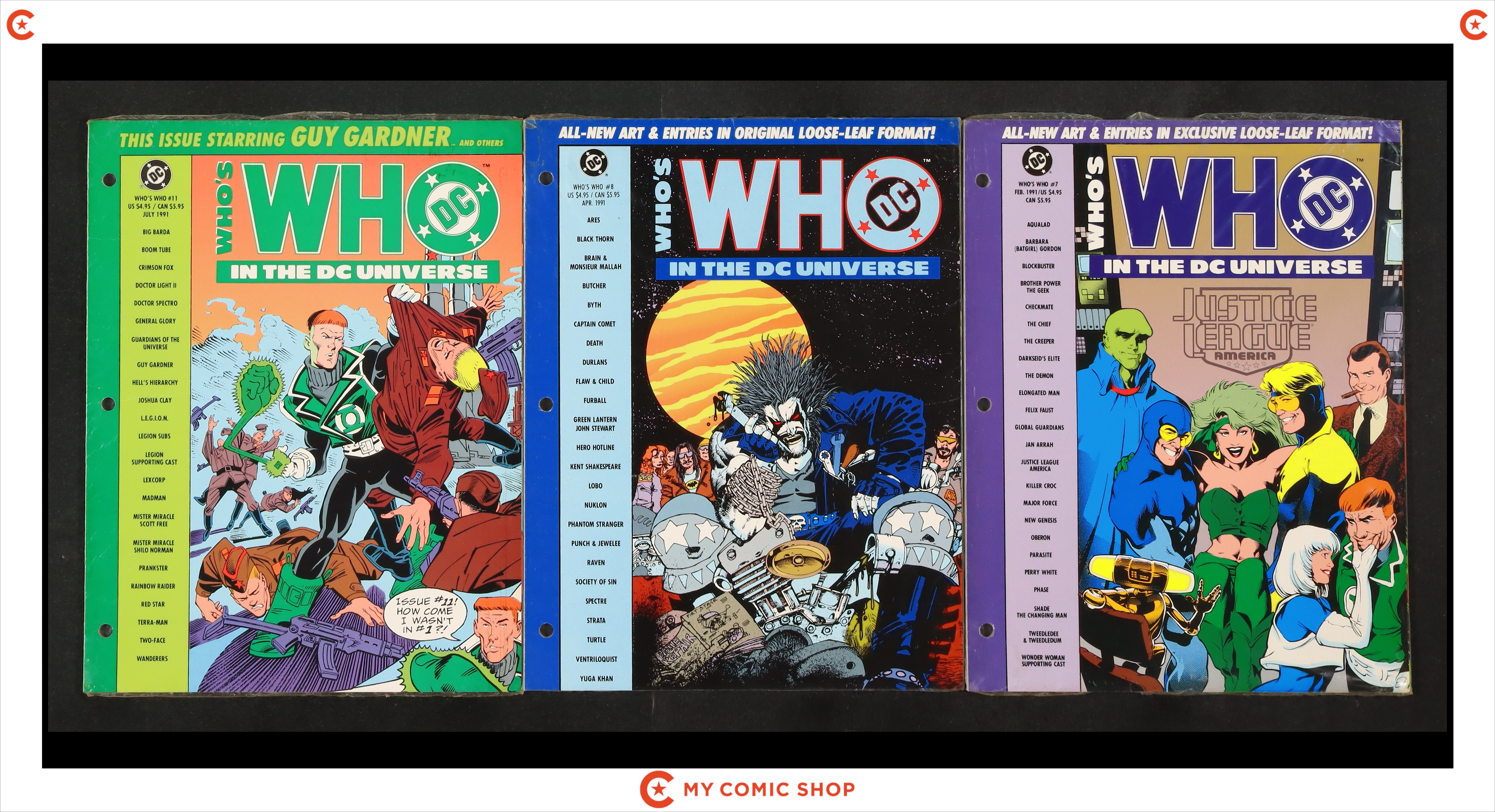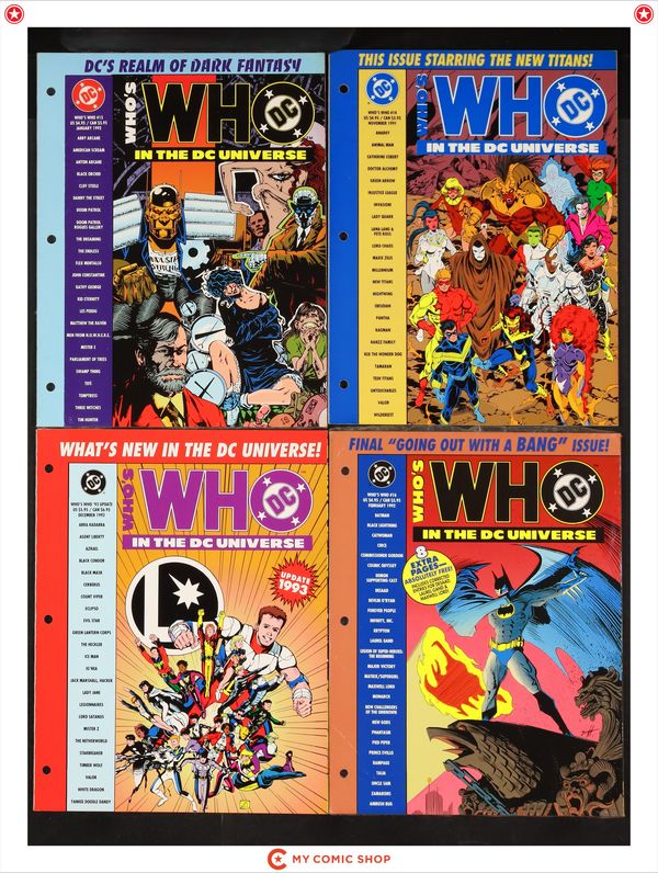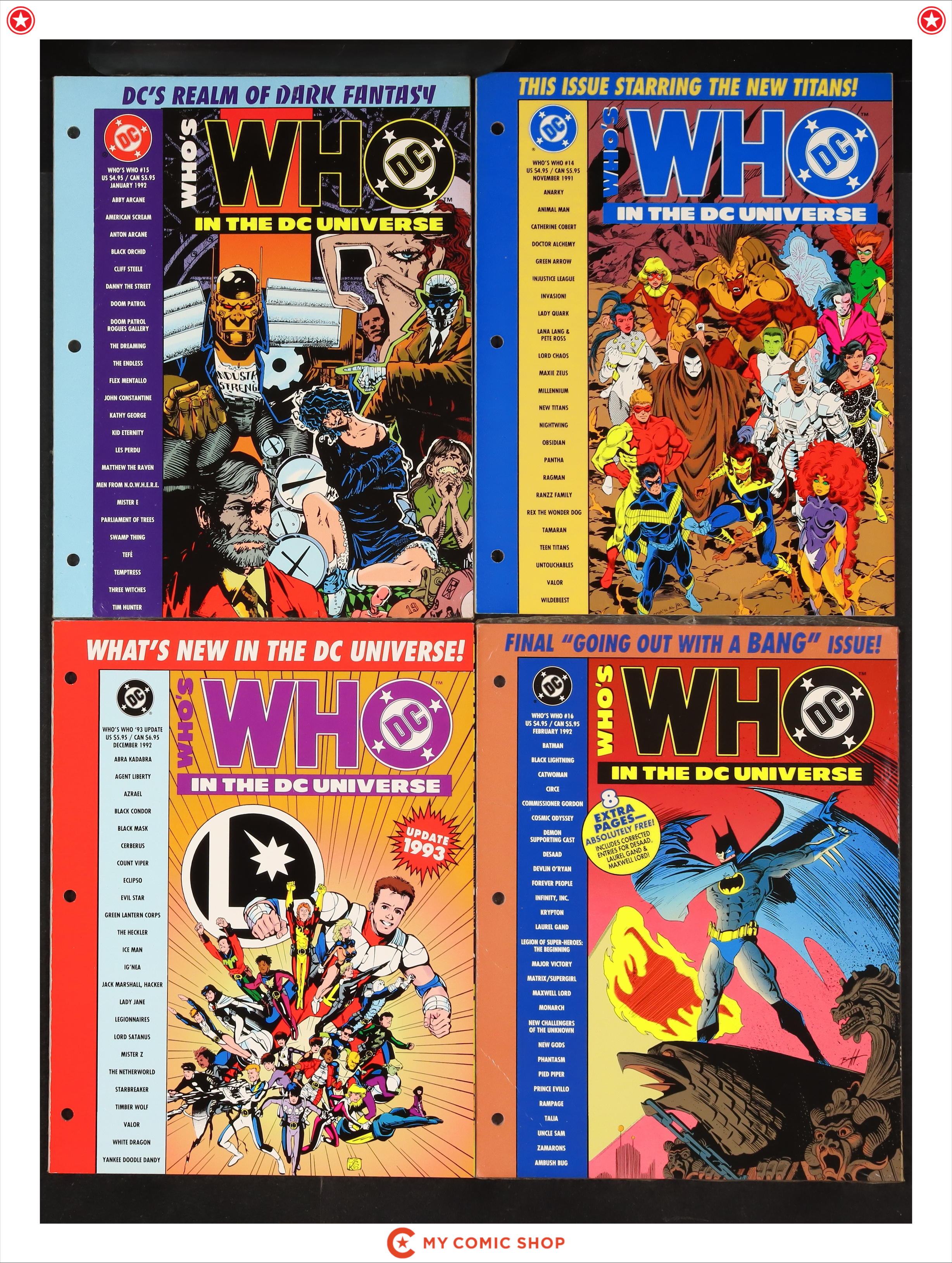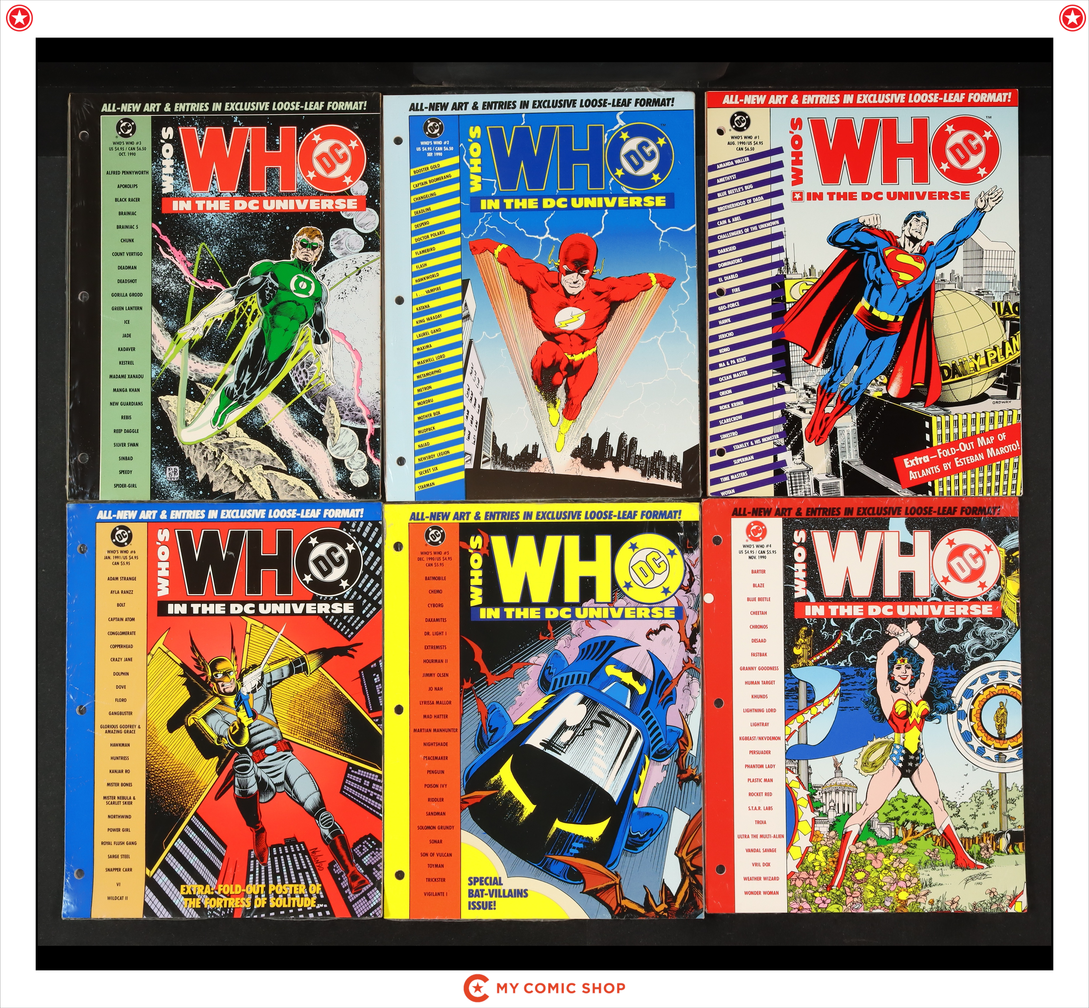Issues 6, 9, 10, 11, 12, 13, 14, 15, 16 of Who's Who in the DC Universe (1990-1992) Loose-Leaf Edition & Who's Who in the DCU Update 1993 (1992 DC) Loose-Leaf Edition 1. Most will grade in the FN/VF to VF/NM range.