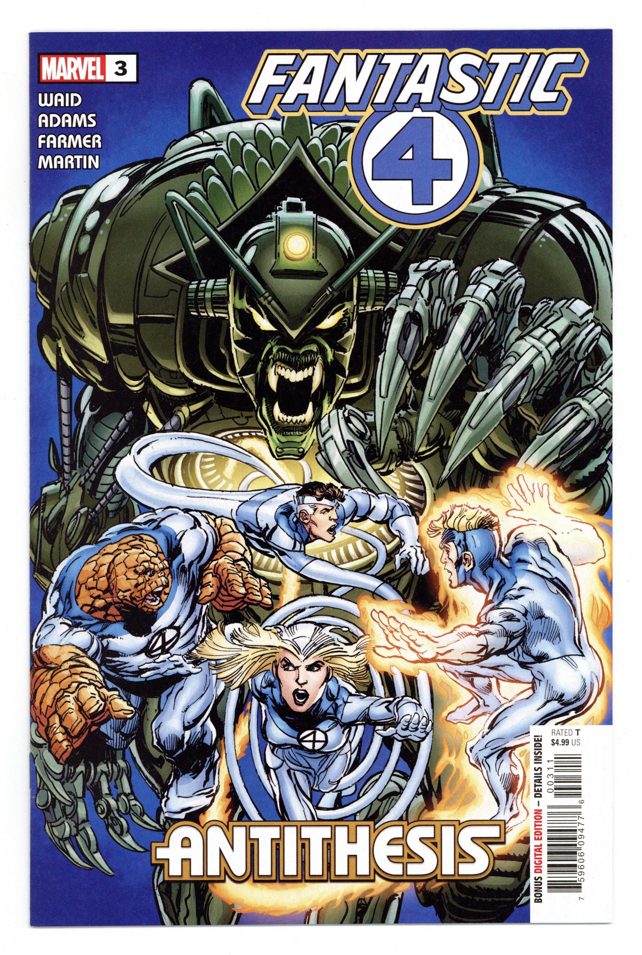 Starts Later today Written by Mark Waid. Art by Neal Adams and Mark Farmer. Cover by Neal Adams. Without Galactus, there's only one way the Fantastic Four can hope to stall the threat of Antithesis - by absorbing the Power Cosmic to multiply their abilities a thousandfold! 28 pages, full color. Rated T Cover price $4.99.