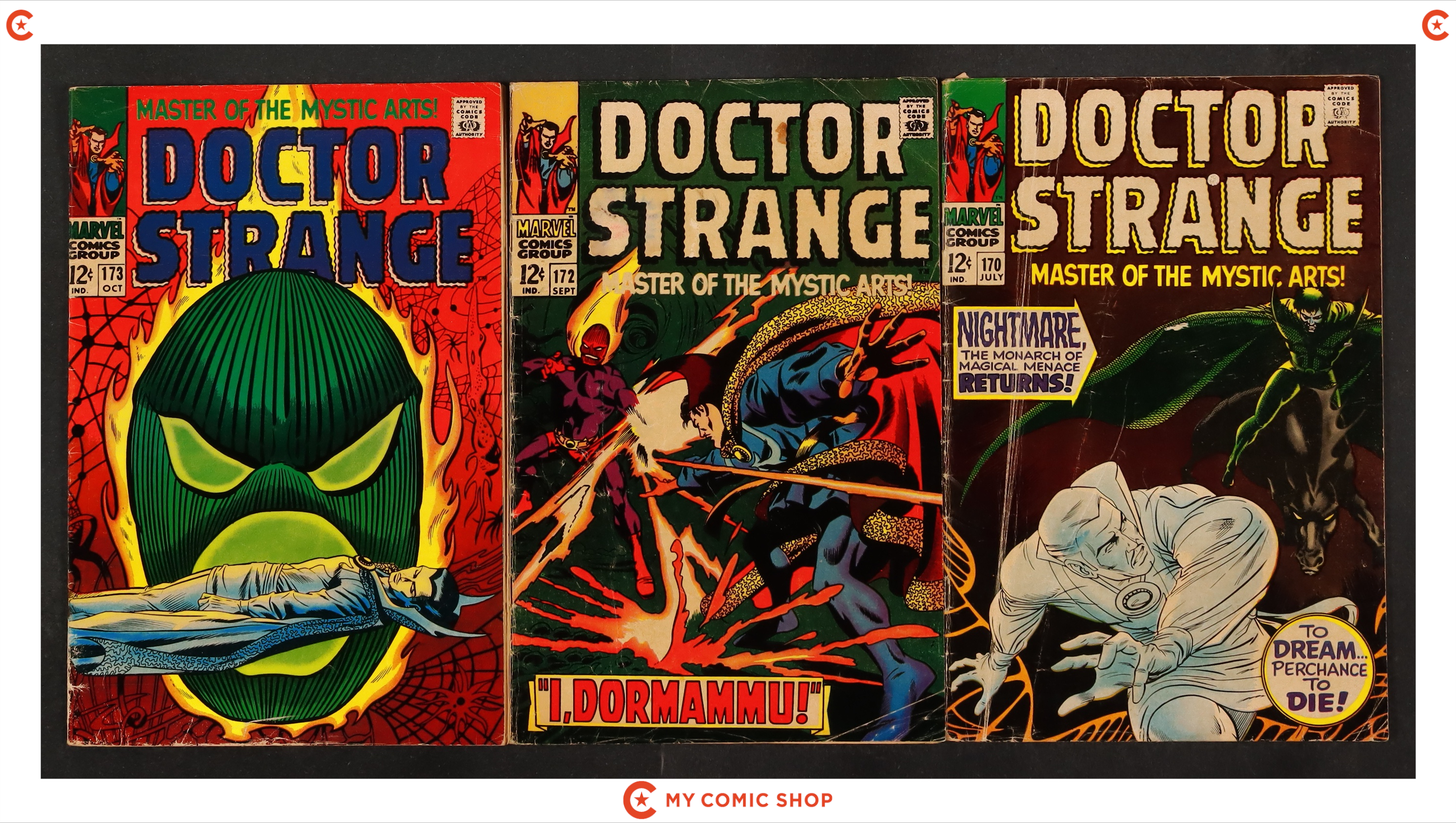 Issues 170, 172, 173 of Doctor Strange (1968 1st Series). Most will grade in the GD to VG range.