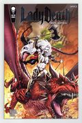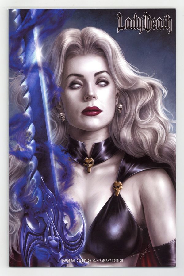 Starts May 18 Premium Edition Cover by Marc Silvestri. Written by Brian Pulido and Mike MacLean. Art by Dheeraj Verma. Lady Death rescues an innocent boy dragged to Hell, inciting an ultra-violent quest into the depths of Damnation, a depraved city hosting 'The Hades Engine,' a contraption that can return the boy to earth. But Lady Death's actions bring her into direct conflict with the nefarious Hellwitch (1st appearance alert). Who will live? Who will die? With her return to Hell, Lady Death is public enemy number one, and you know what? She wouldn't have it any other way. Let the mayhem begin! 48 pages, full color. NOTE: Generic image is of a signed copy, this does not necessarily reflect all copies. Cover price $25.00.