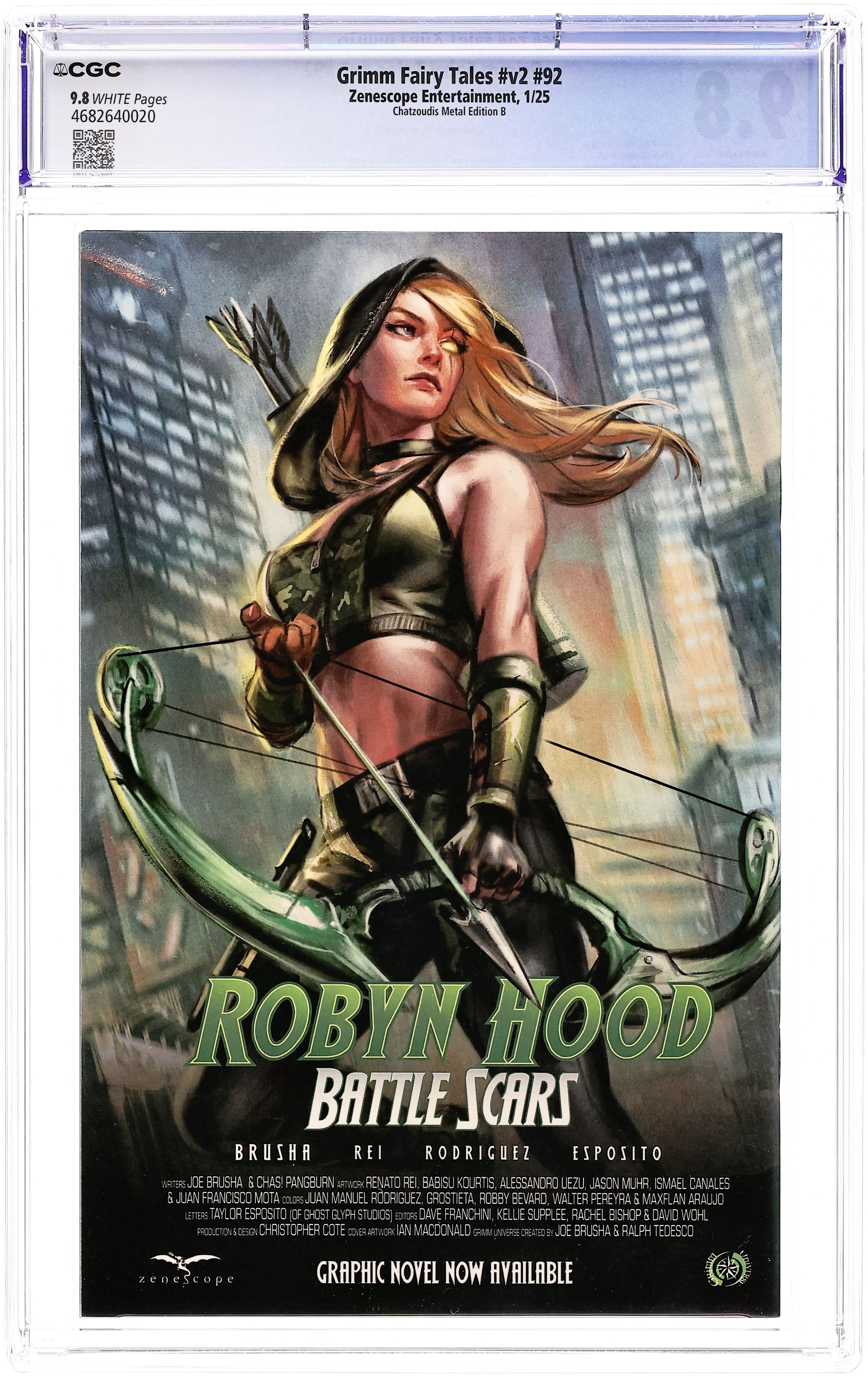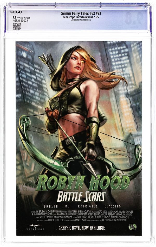Published Jan 2025 by Zenescope Entertainment.Grimm Fairy Tales (2016 2nd Series) 92METAL.CHATZOUDIS.C CGC 9.8