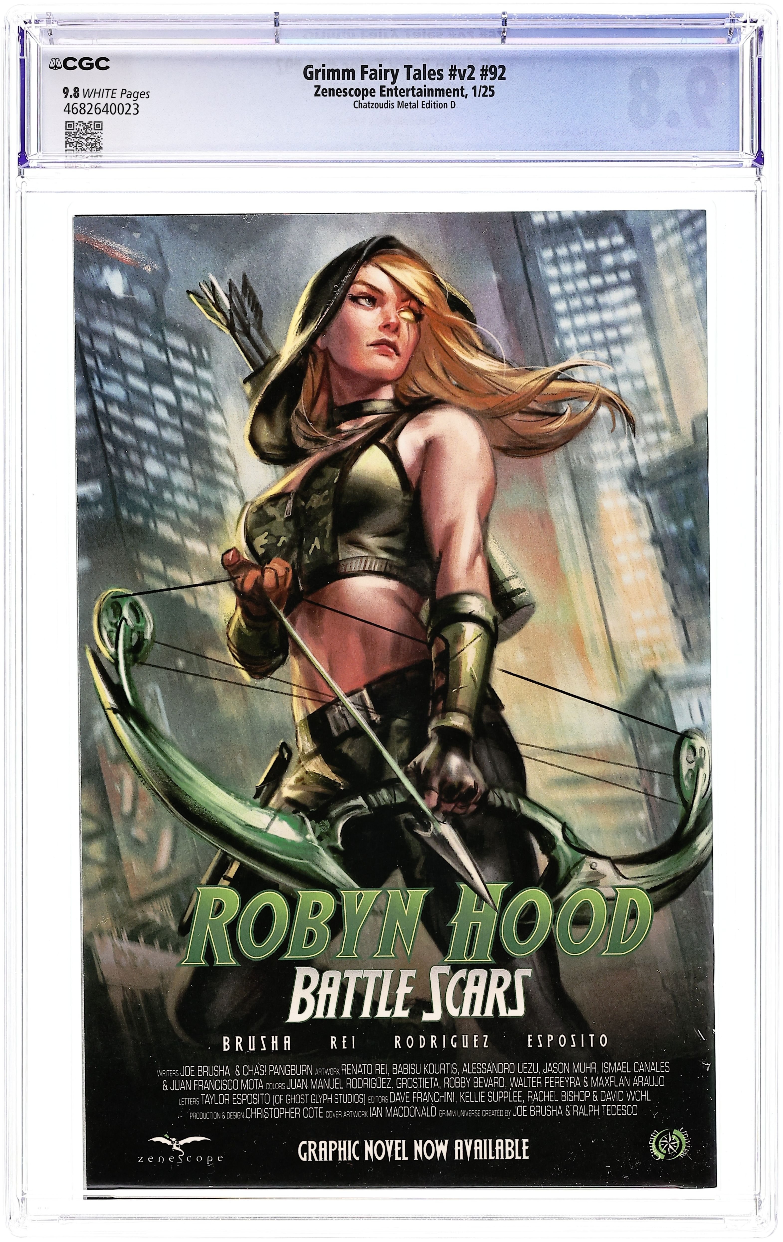 Published Jan 2025 by Zenescope Entertainment.Grimm Fairy Tales (2016 2nd Series) 92METAL.CHATZOUDIS.B CGC 9.8