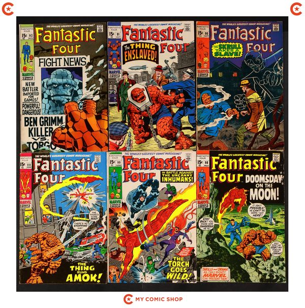 Issues 88, 89, 90, 91, 92, and 93 of Fantastic Four (1961 1st Series). Most will grade in the GD to VG range.